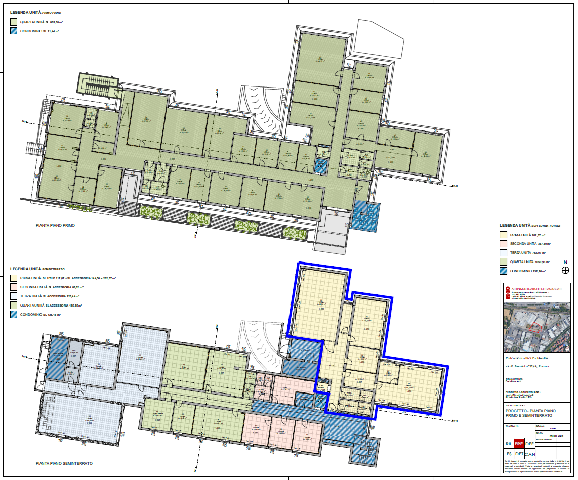 In palazzina direzionale in ristrutturazione, zona Parma Ovest ben servita dai mezzi pubblici, si dispone di ufficio di complessivi 262 mq.Al piano seminterrato della palazzina direzionale, con ingresso autonomo, gli uffici occupano 262 mq e sono ...