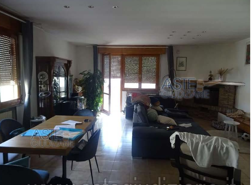 Vendesi in Asta a San Giovanni In Marignano, Appartamento composto da: cantina al p. interrato; cucina da destinarsi a ripostiglio al p. t.; soggiorno, cucina, disimpegno, due camere, due w.c., ripostiglio, tre balconi al p. I; quattro ripostigli,...