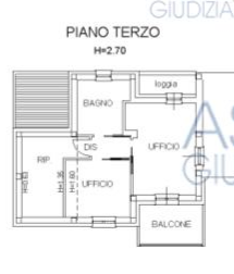 Vendesi in Asta a Cattolica, ufficio al piano terzo composto da due locali ad uso ufficio, disimpegno e bagno, superficie lorda mq 43,28, ripostiglio sottotetto con altezza minore di mt 1,50, superficie lorda mq 14,11, loggia e balcone, superficie...