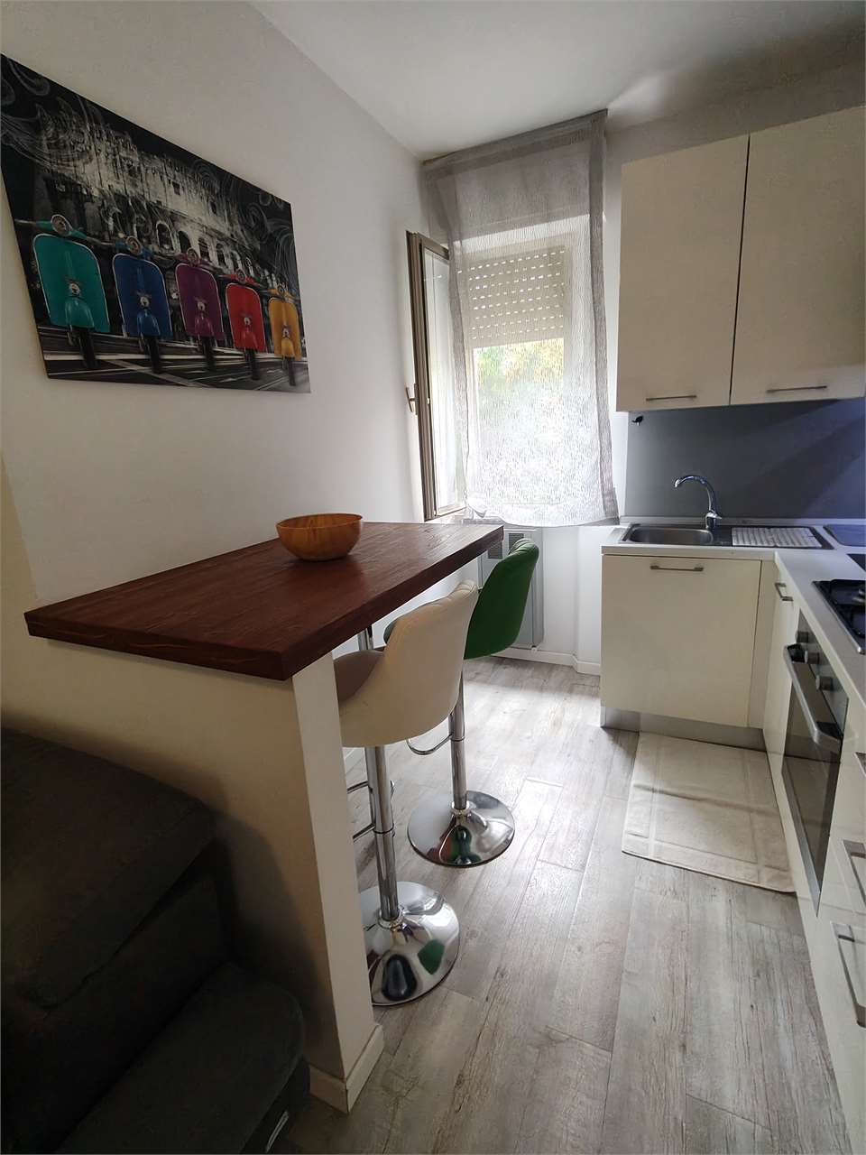 OSIMO in via Marco Polo zona servitissima appartamento al piano primo con ascensore ingresso sul soggiorno con angolo cottura , camera matrimoniale con balcone e bagno con doccia e finestra . Ristrutturato e completamente arredato EURO 95.0...