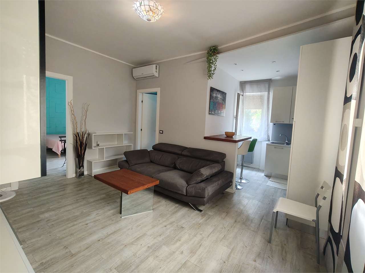 Grazioso bilocale di mq 50, nuovo, mai abitato, composto da ingresso in sala con angolo cottura, camera da letto, ampio bagno, cantina e posto auto interno al condominio, interamente climatizzato, cassaforte. Disponibile da subito Immobiliare Casa...