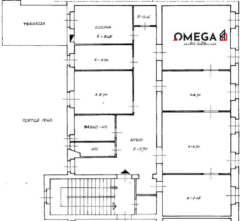 Stabile d'epoca in buone condizioni dotato di ascensore in zona centrale e servita. Appartamento sito al terzo piano con doppia esposizione. Corridoio d'ingresso, soggiorno con doppia finestra, cucina abitabile con terrazza interna di 35 mq. Camer...