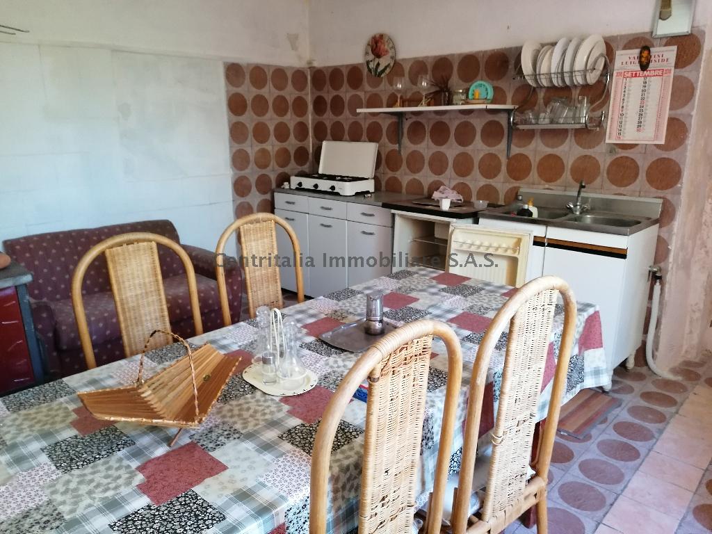casa su due livelli attualmente divisa in due apparatmenti Piano terra senza termosifoni solo stufa, cucina, bagno camera e soggiorno Primo piano: 2 camere, cucina sala bagno e terrazzo Ampio capanno + ricovero attrezzi + 4000 mq di terreno