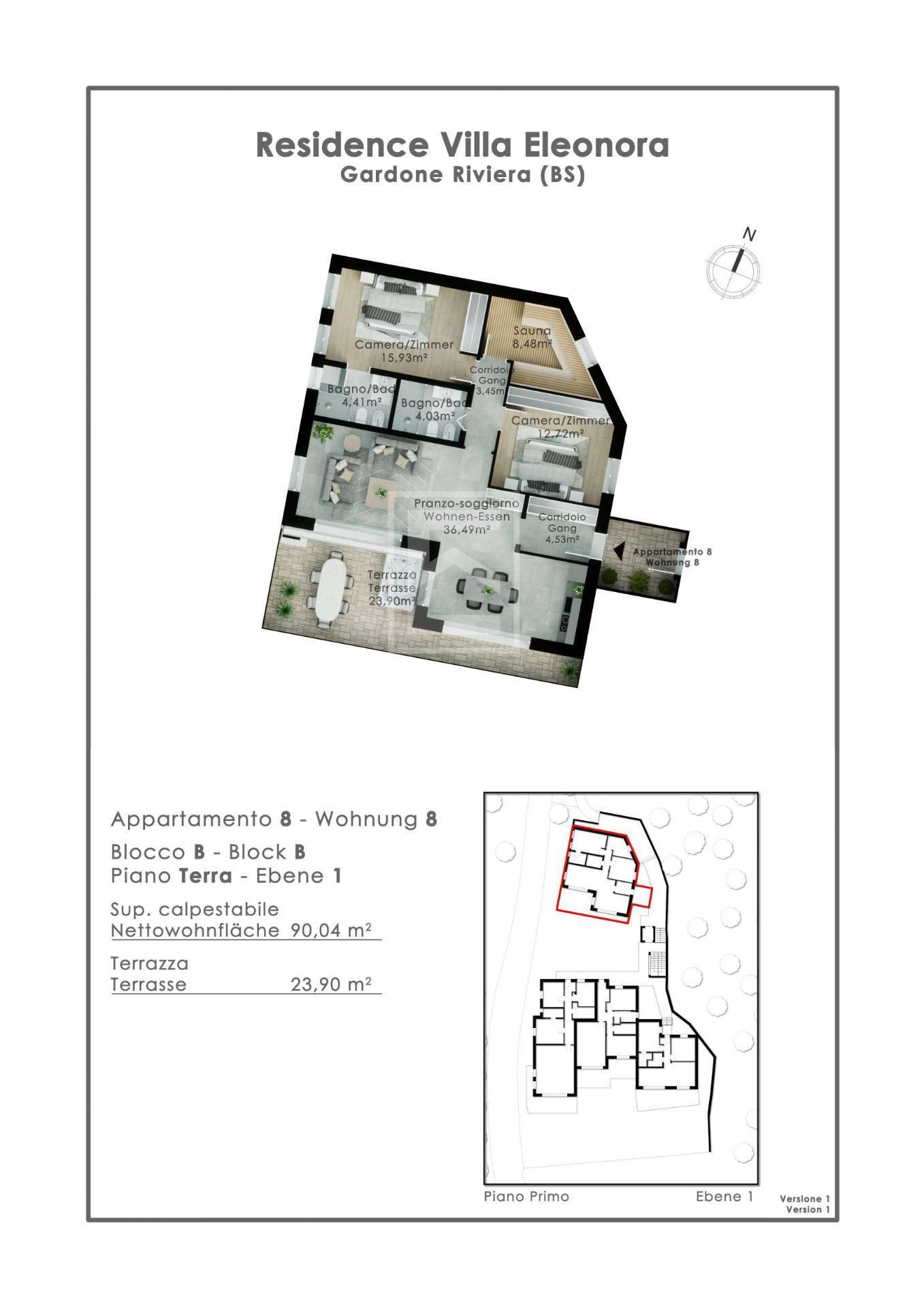 APPARTAMENTO TRILOCALE CON DOPPI SERVIZI E GIARDINO PRIVATO A GARDONE RIVIERA LB-031-67 Villa Eleonora è la nuova residenza che nasce a Gardone Riviera, nello storico Borgo di Fasano, il complesso con piscina condominiale e uliveto privato si com...