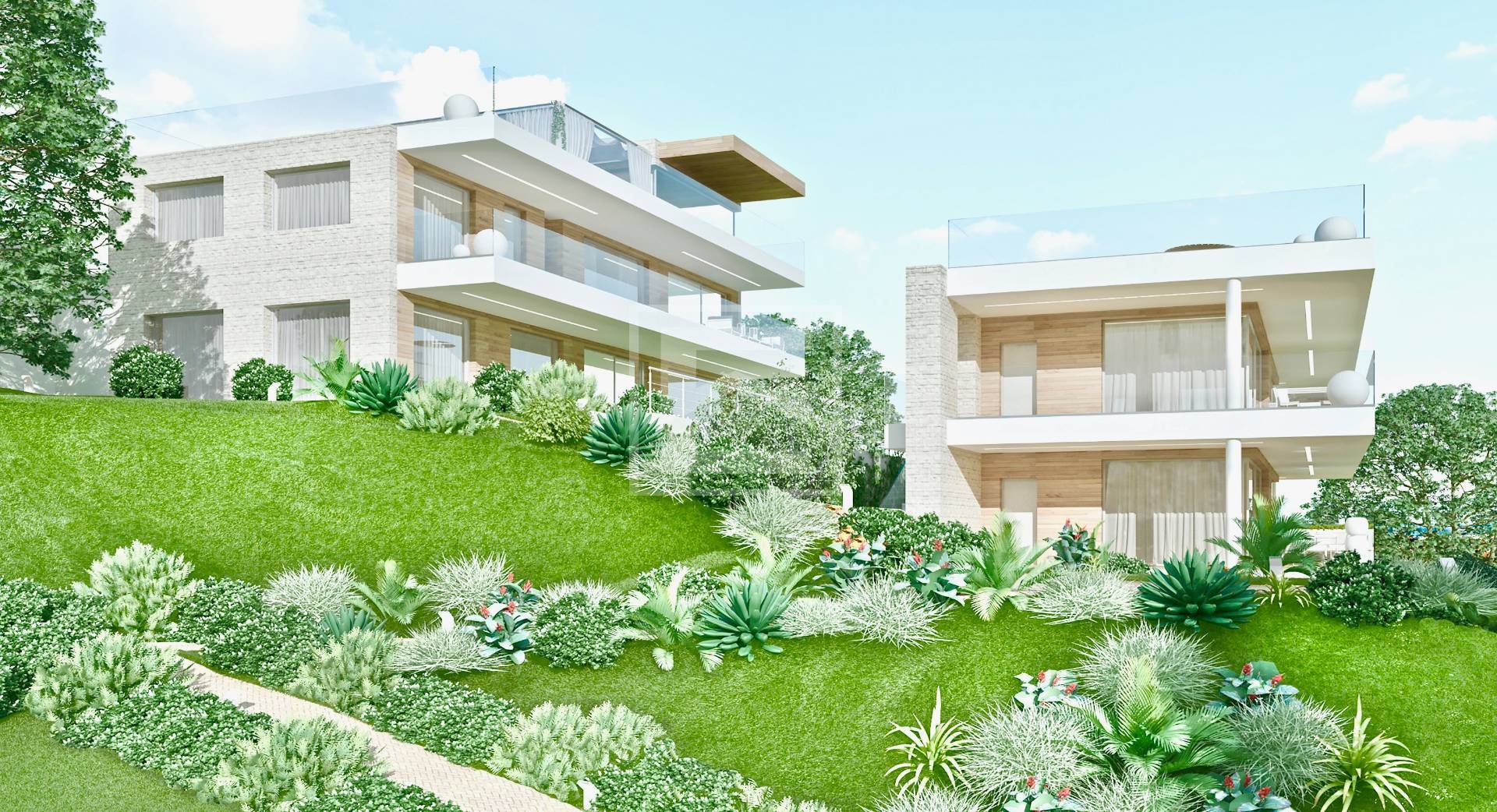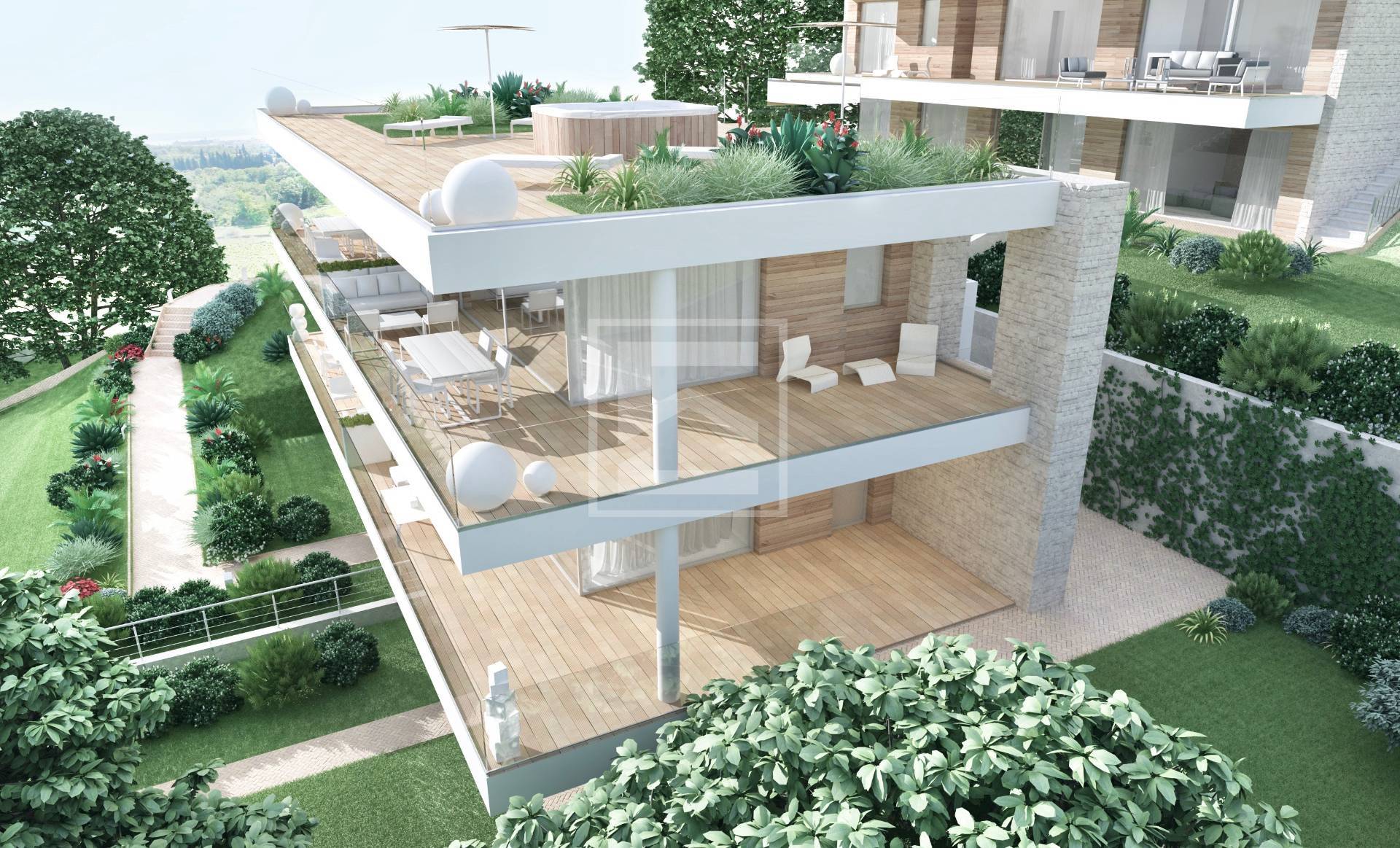 MT-001-278 Raffa di Puegnago originale e innovativa villa bifamiliare composta da due unità ognuna con piscina privata. immobile di nuova costruzione, in classe energetica elevata, capitolato con finiture di alto livello con possibilità di scel...
