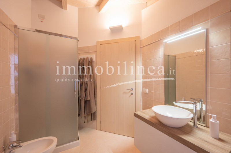 TORRI DEL BENACO - ALBISANO - Immobilinea propone in esclusiva questa bellissima villa indipendente inserita in un giardino di circa 1.100 mq. La villa, dal gusto classico si sviluppa su tre livelli: al piano terra troviamo l'ingresso che dirige d...