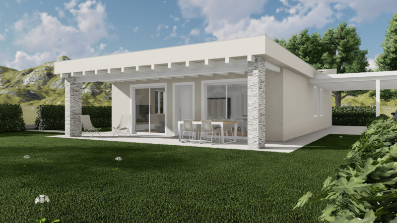 Villa singola in fase di realizzazione prefabbricata in legno, in classe A4, completamente elettrica, con finiture di pregio, cosi composta : ampia zona giorno con cucina a vista, tre camere, doppi servizi; al piano interrato ampio locale open sp...