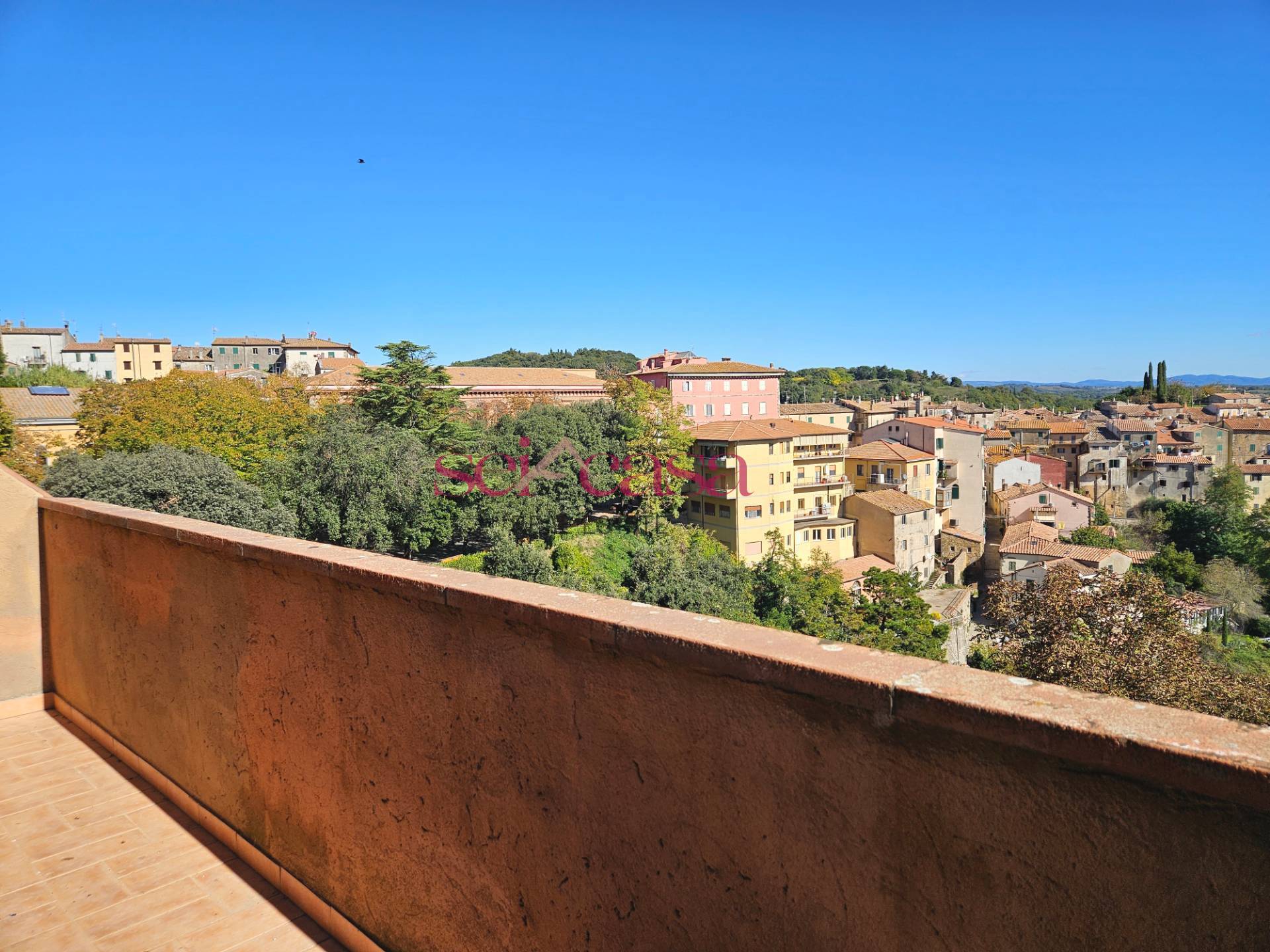 Rif. EN 508 - Scansano (GR) - Appartamento con vista panoramica nel paese di Scansano, posto al quarto piano senza ascensore. E' composto da corridoio di ingresso, cucina, ampio e luminoso soggiorno con camino e accesso al balcone, camera matrimo...