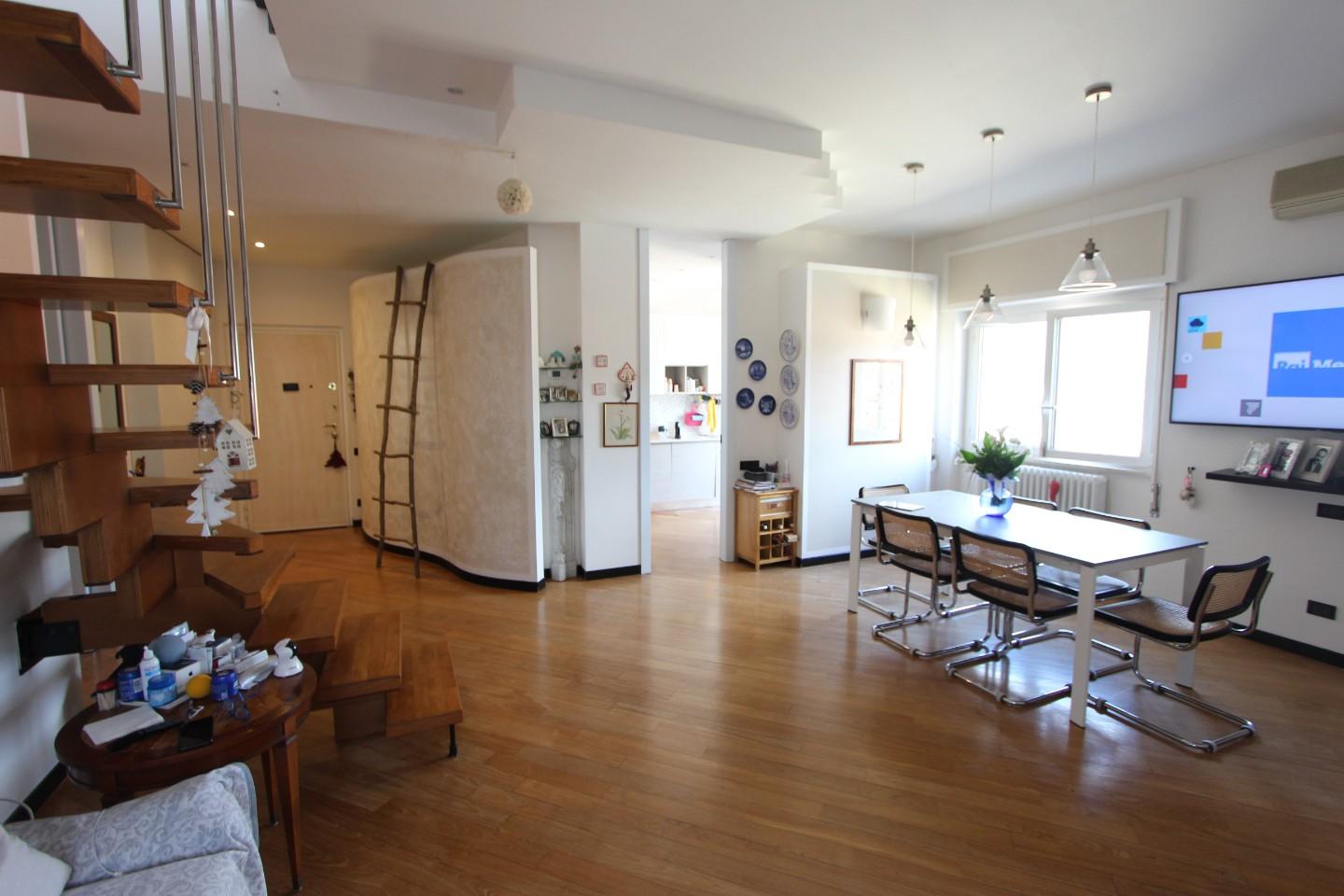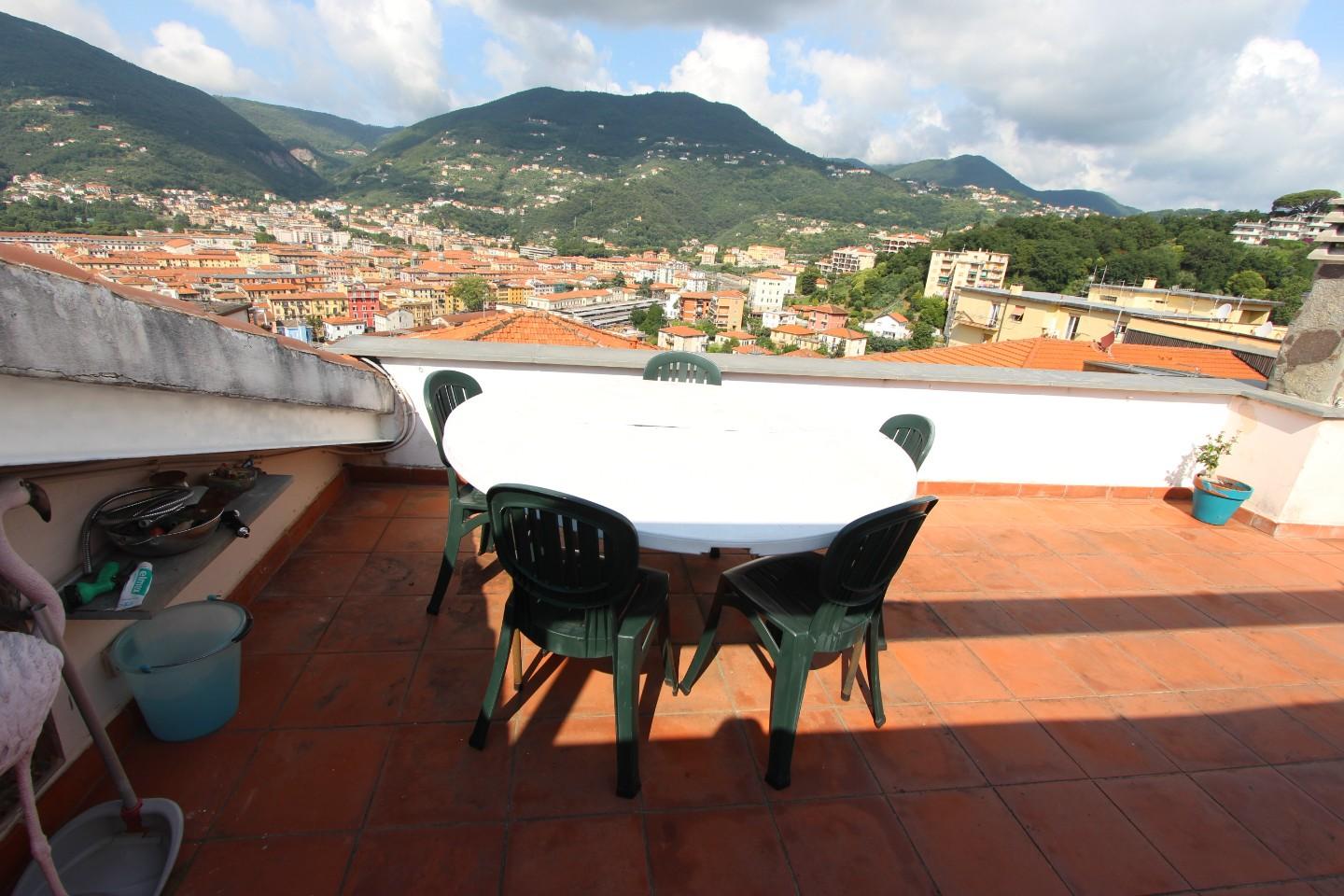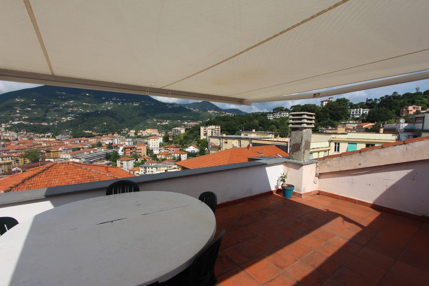 La Spezia Attico in vendita - 9 vani - 194 mq - posto 2°, disposto su 2 livelli, con al piano d'ingresso grande sala con balcone vista città, cucina, 2 camere matrimoniali, cameretta/studio, 2 bagni, accesso al piano superiore tramite comoda sca...