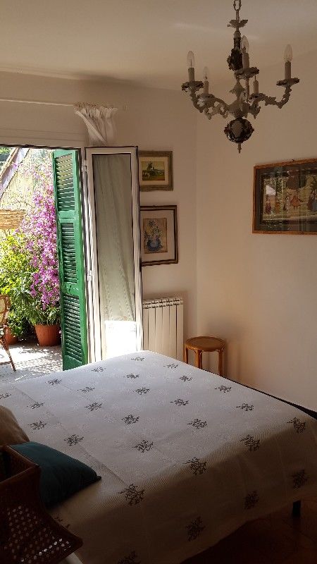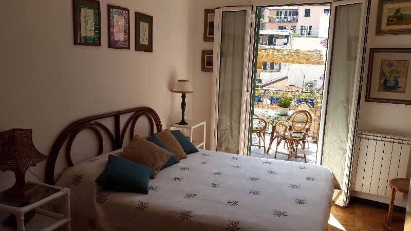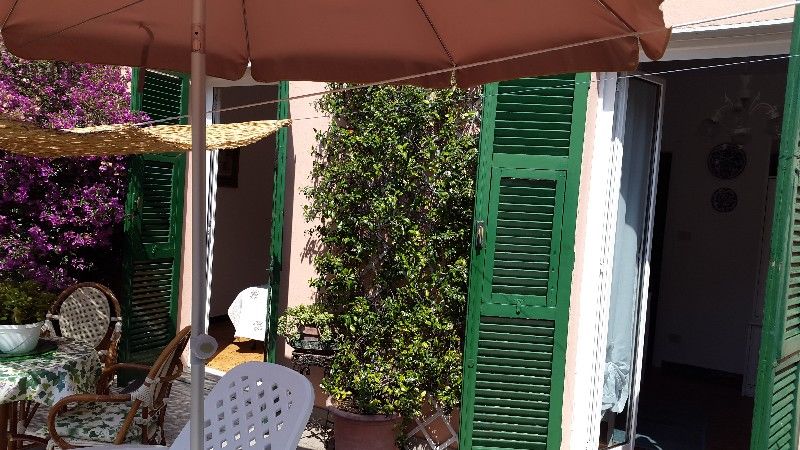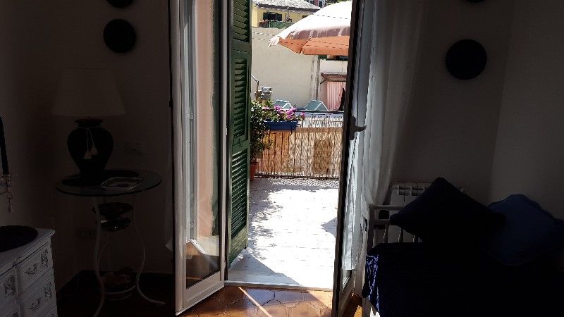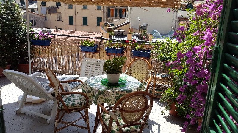 5 Terre, al centro di Riomaggiore, in tipica costruzione ligure, al primo piano, stupendo 3 vani con grande terrazza e poggiolo, composto da poggiolo, ingresso in cucina, camera matrimoniale con accesso alla terrazza, sala o 2° camera sempre con a...