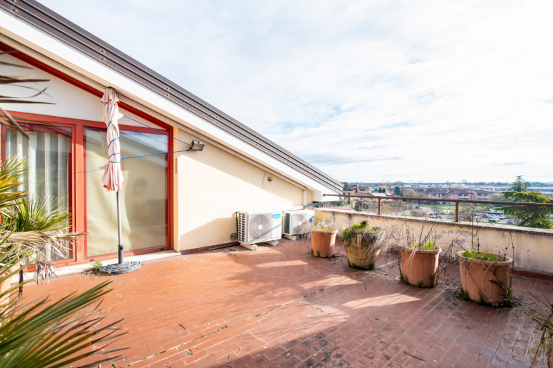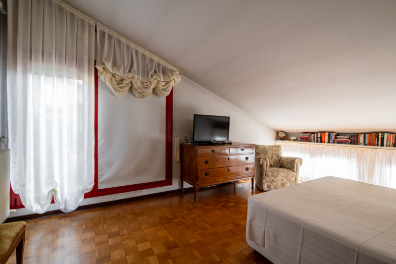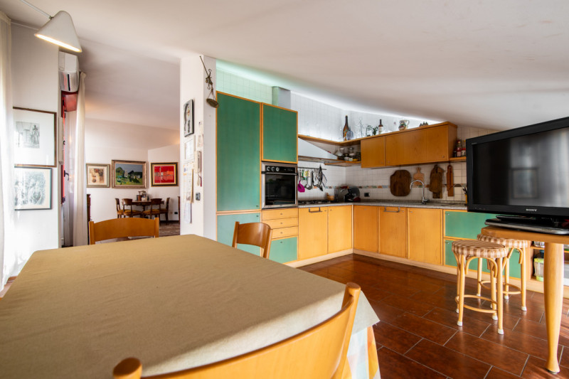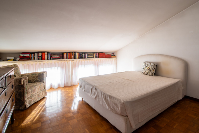 Zona centrale e molto servita, luminoso attico mansardato sviluppato su unico livello al piano quarto, servito da ascensore. La zona giorno è composta da ampio soggiorno che affaccia alla terrazza solarium con splendida vista, cucina separabile, n...