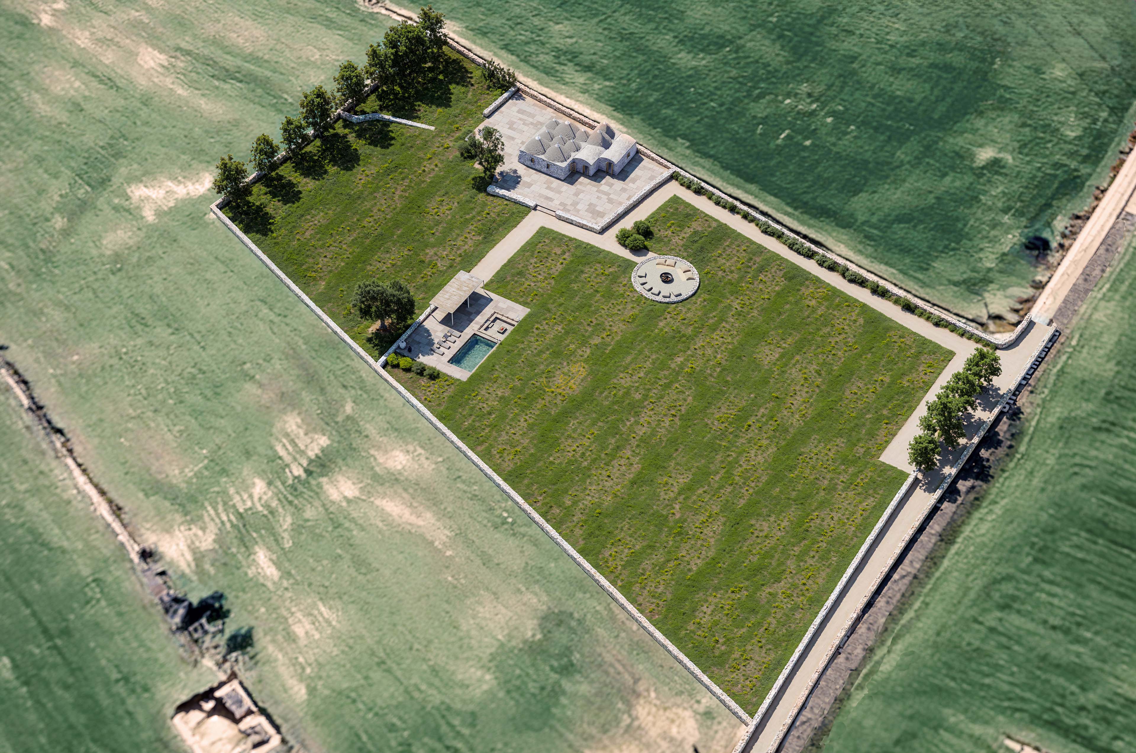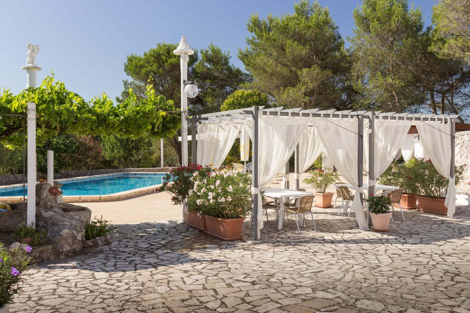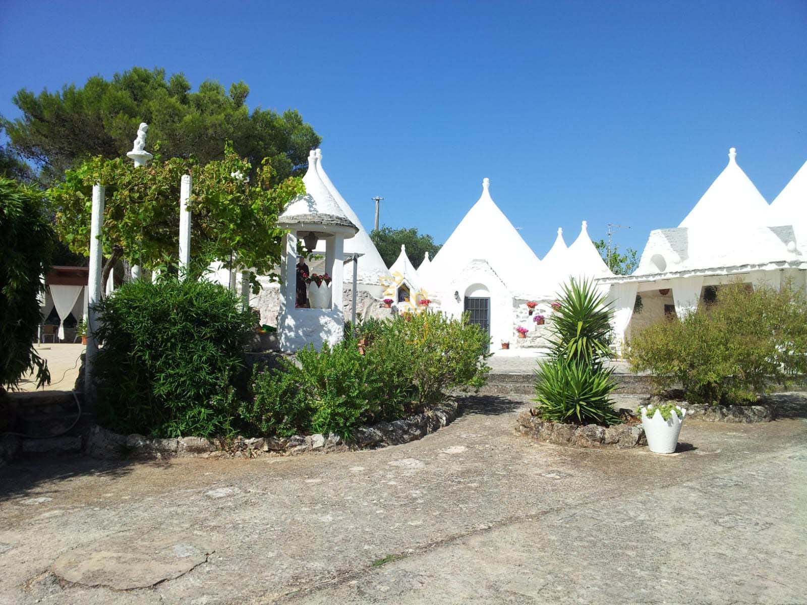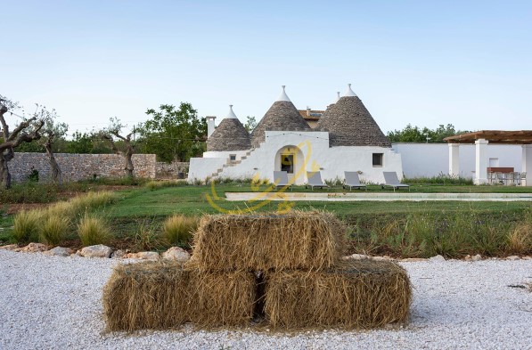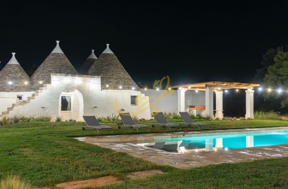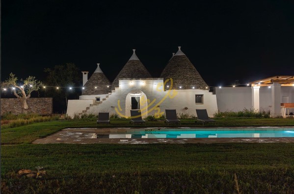 R 465 Putignano Trulli S.C Pozzo Martino Proponiamo in vendita un incantevole complesso di trulli ristrutturati, immerso in un terreno di circa un ettaro, arricchito da alberi da frutto e ulivi, a 3 km da Putignano. La piscina, circondata da p...