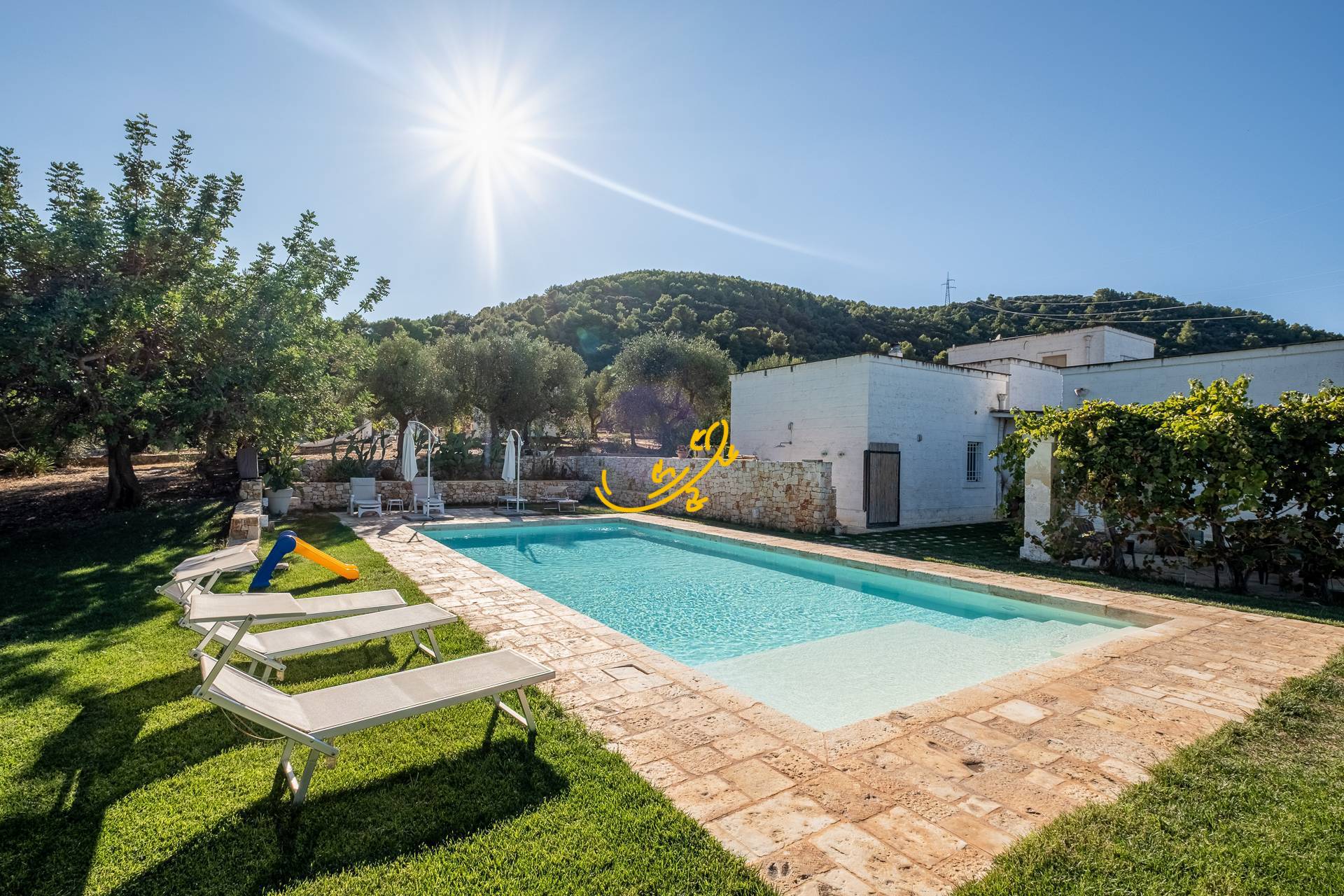 Fasano - Contrada Monte Pizzuto Tenuta Vista Mare con Trulli e Piscina Tra Fasano e Cisternino, a soli 5 km dalle splendide spiagge del Mare Adriatico, proponiamo in vendita una tenuta in pietra e tufo, immersa nella natura e nel cuore della Vall...