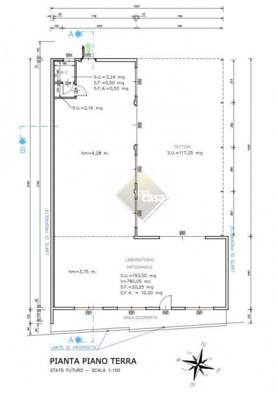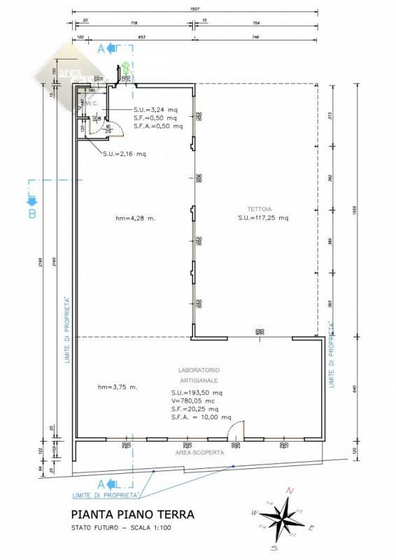 Capannone artigianale disposto su due livelli produttivi. (piano terra H 4 Mt. e piano primo H 3,30 Mt.) La parte direzionale/abitativa si trova sul fronte strada e si sviluppa su tre livelli: Semi interrato-Piano terra rialzato-piano primo. In ...