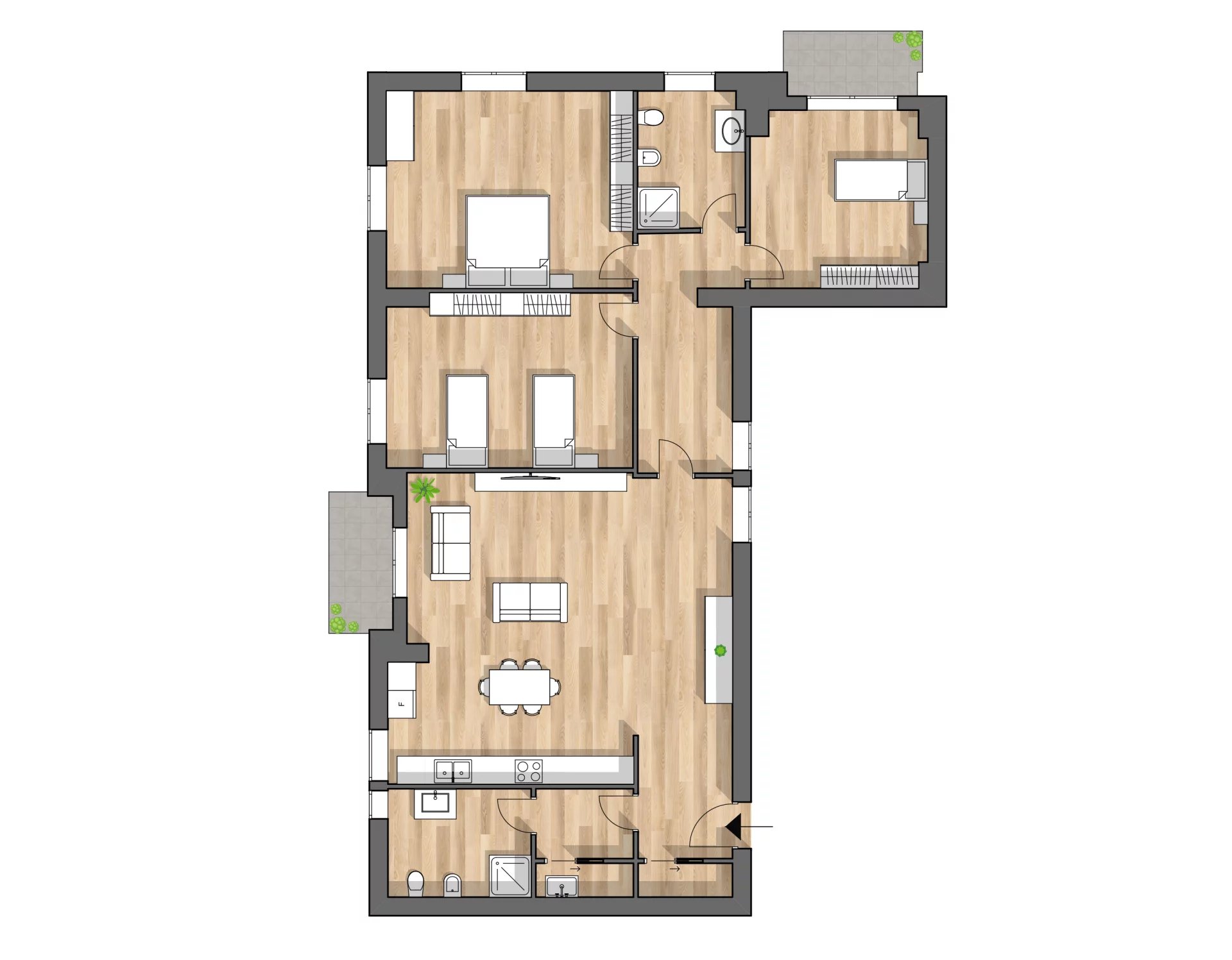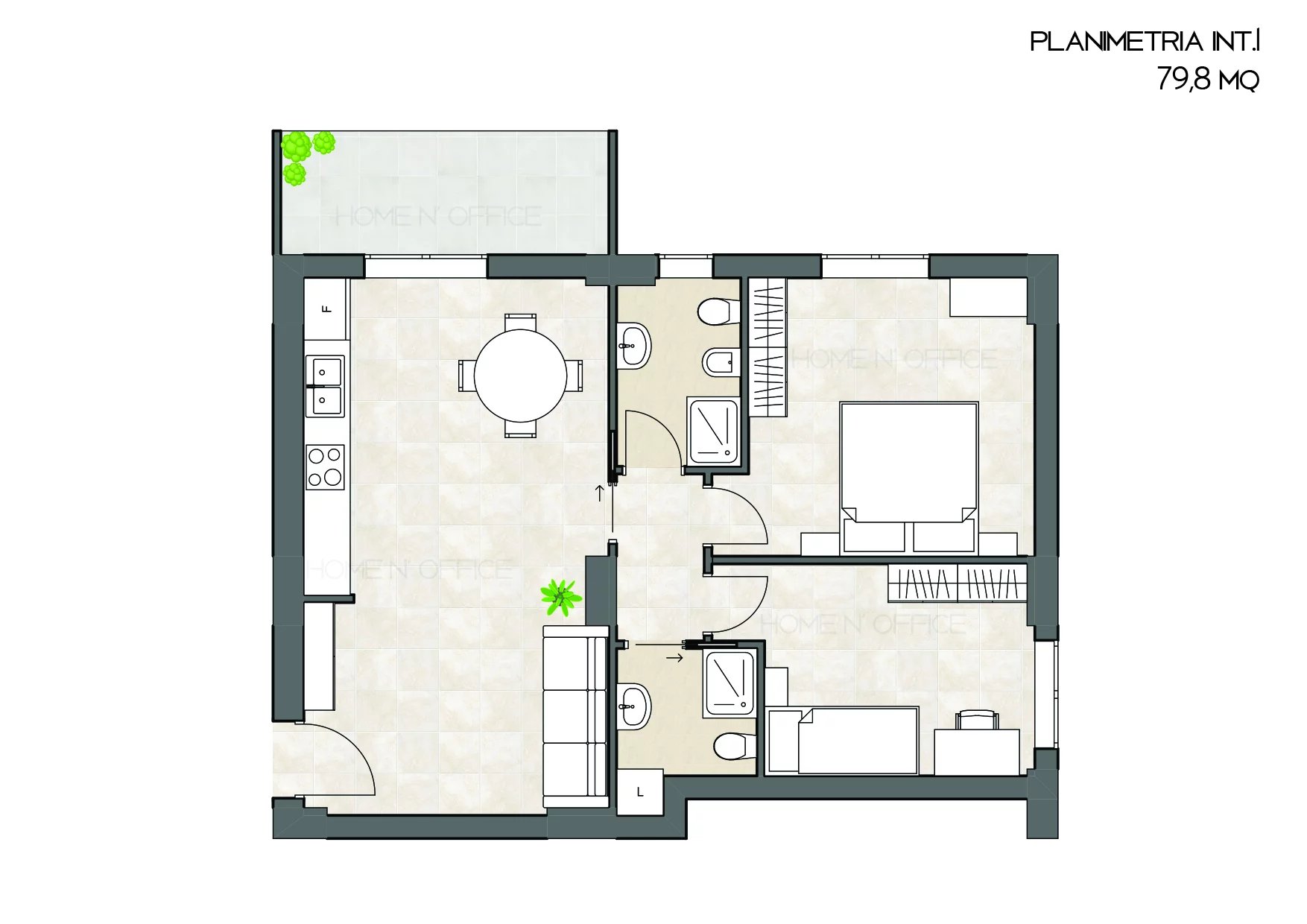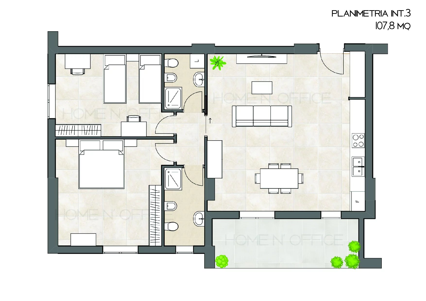 Home N' Office is offering for sale a newly built apartment located on the third floor of an elegant four-story building. The property features: Living room with open-plan kitchen 2 spacious bedrooms 2 bathrooms Terrace **Features and...