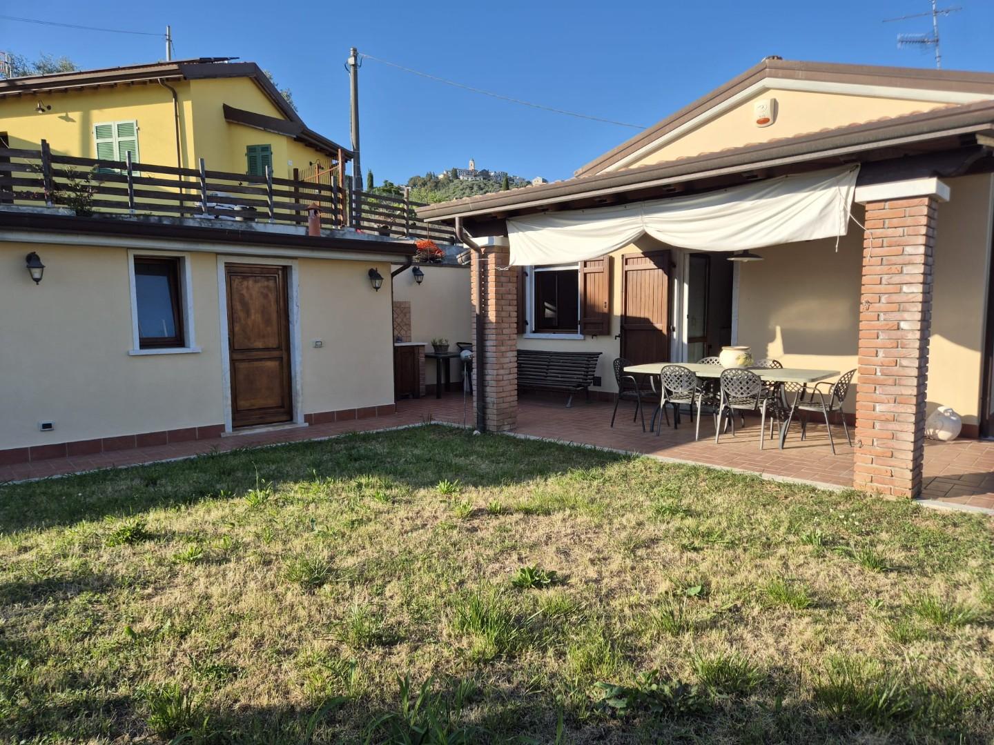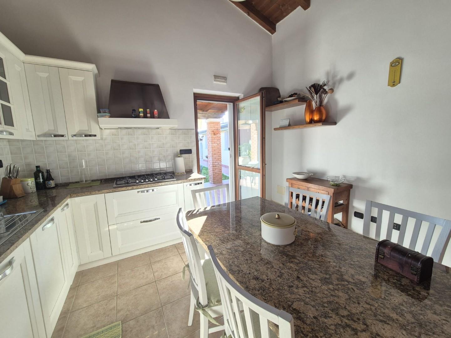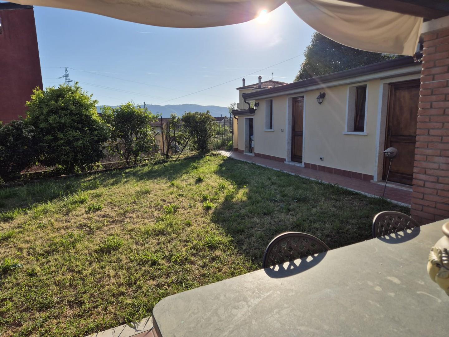 GRAZIOSA VILLETTA PRATICAMENTE INDIPENDENTE ( attaccata solo da un lato ) con AMPIO GIARDINO PRIVATO E DUE POSTI AUTO. Disposta su UN UNICO LIVELLO si compone di ingresso in soggiorno, grande cucina abitabile con accesso al portico pranzabile, cam...