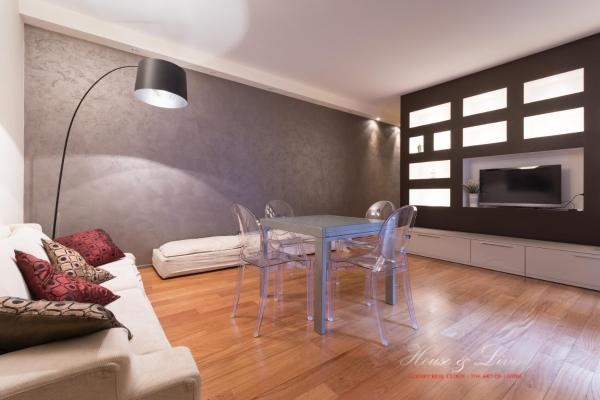 In stabile di elevato pregio architettonico appartamento attico al piano quinto.L'appartamento è composto da accesso con ascensore e sbarco privato, scala interna privata con accesso dal piano quarto.Zona giorno molto ampia, caratterizzata dalla v...