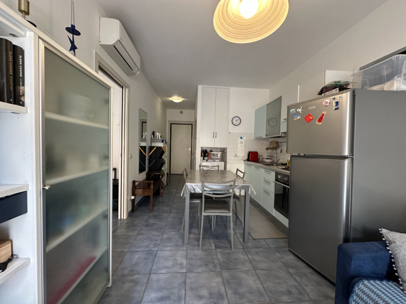 SENIGALLIA Zona Lungomare di Levante proponiamo al primo piano con ascensore appartamento in ottime condizioni di mq 50 composto da ingresso, soggiorno con angolo cottura, due camere, un bagno, un terrazzo di mq 12 e un garage di mq 18. Espe...