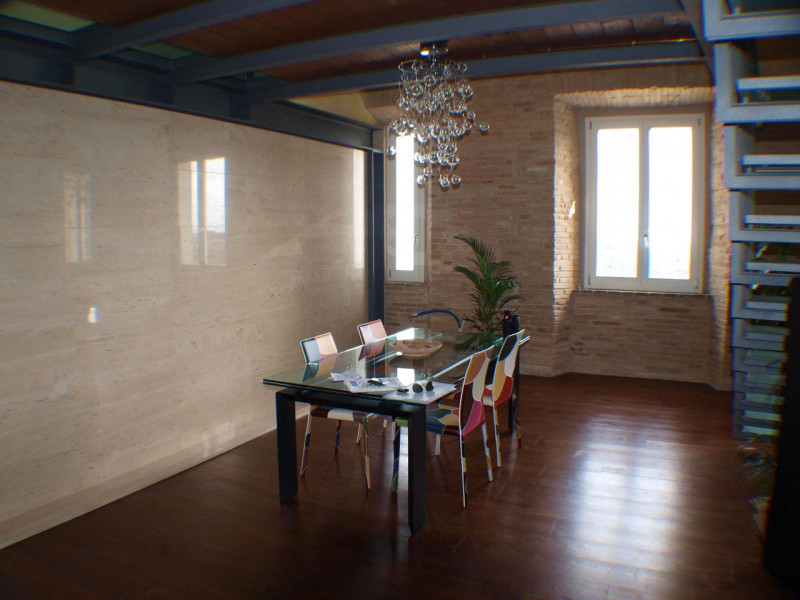 MONTE SAN VITO In contesto prestigioso palazzo del '400 appartamento panoramico mare in ottime condizioni e con finiture e materiali di pregio sviluppato su 2 livelli per tot. mq. 200 composto da ingr., cucina, soggiorno, 3 camere, 3 bagni e gara...
