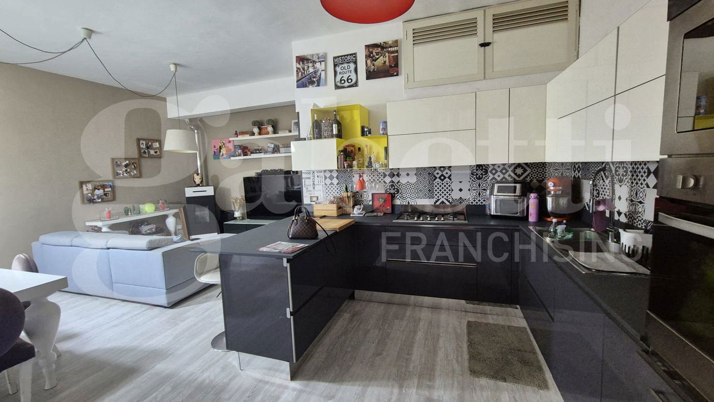 Appartamento in pieno centro composta da : ingresso, cucina soggiorno, due camere e bagno con vista mare.
