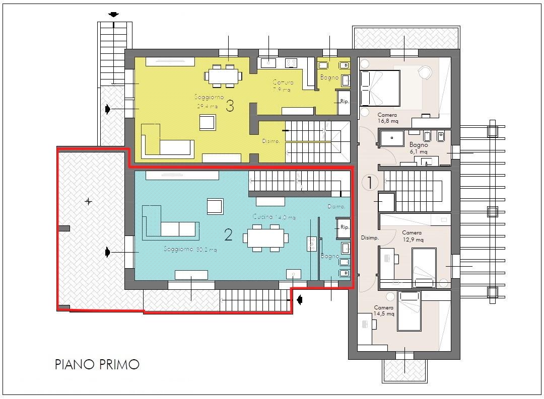 Rif. 3930 - CASCINA ZONA CENTRALISSIMA – Realizzazione di piccolo fabbricato costituito da tre villette indipendenti da terra a tetto, tutte corredate di giardino esclusivo. VILLETTA ANGOLARE articolata su tre piani fuori terra. Al piano terra si...