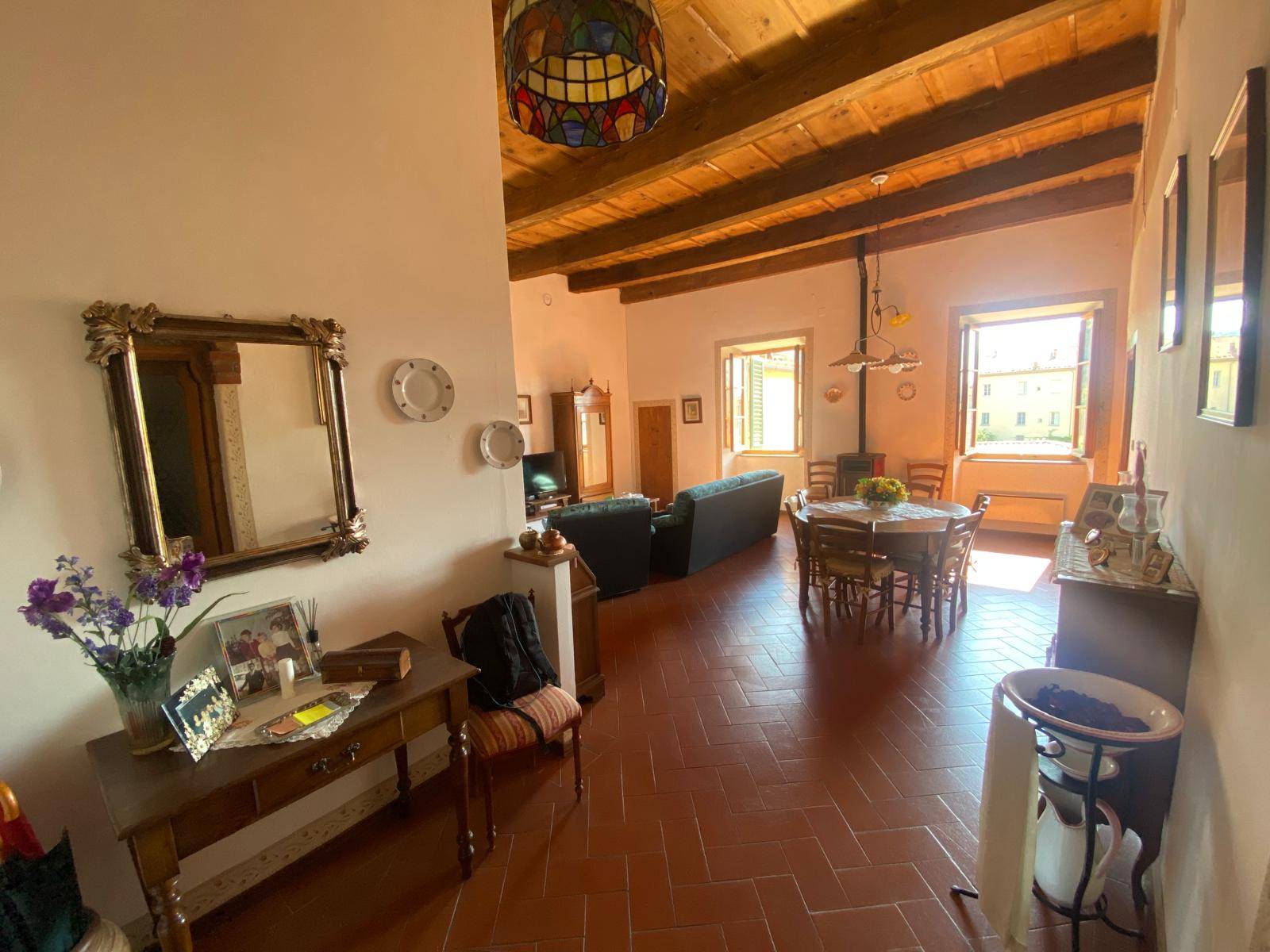 Nel cuore autentico di Stia, affacciato sulla splendida Piazza Tanucci uno dei luoghi più suggestivi del Casentino e scenario cinematografico de Il Ciclone si trova questo appartamento dal fascino raro, capace di unire calore, luce e straordin...