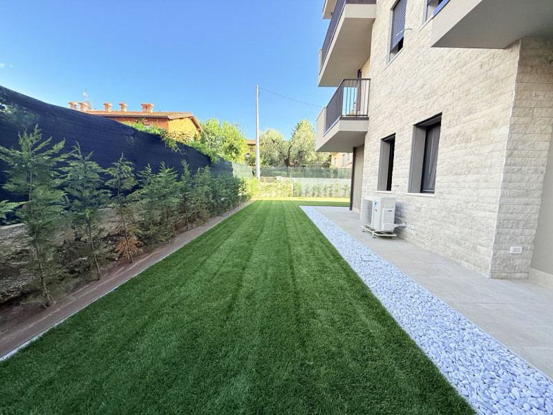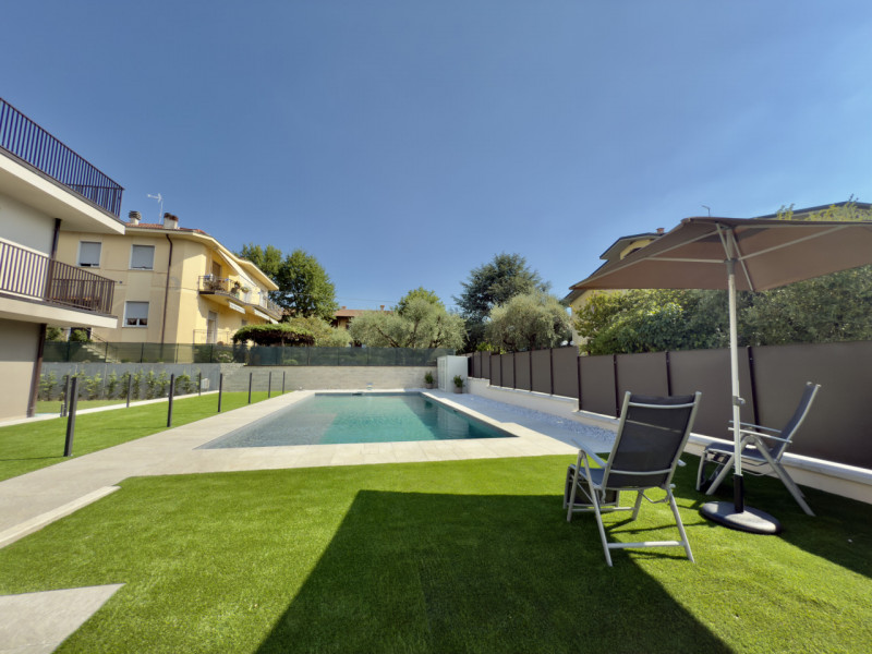 Un residence riservato, moderno e sostenibile, a due passi dalle mura storiche di Lazise. Piscina effetto spiaggia, vasca idromassaggio e spazi curati in ogni dettaglio. Unica disponibilità con grande giardino indipendente e porticato coperto, pe...