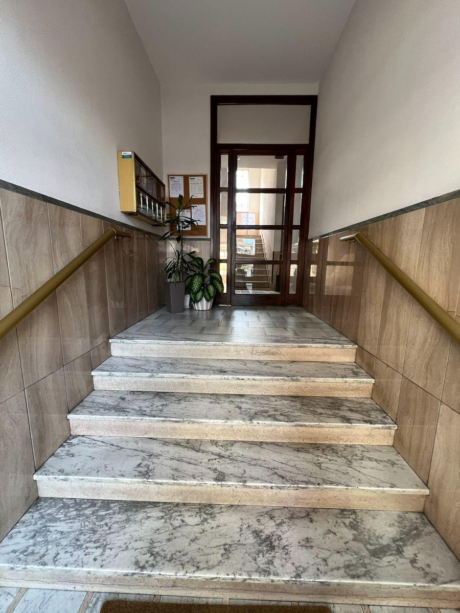 - al piano primo, alloggio composto di tinello con balcone di affaccio sul cortile comune, cucinino, due camere, bagno e due ripostigli; - al piano cantinato, locale ad uso cantina. Le fotografie allegate hanno finalità puramente illustrati...