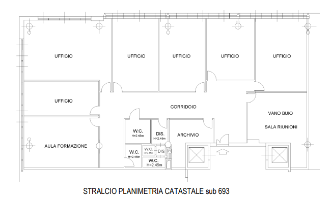gli uffici sono posti al piano primo (2°pft) e sono composti da: ingresso con area di accoglienza dal quale il corridoio distribuisce a 6 uffici e 1 aula di formazione. A questi locali, si aggiunge: 1 sala riunioni, 1 locale destinato ad archivio ...