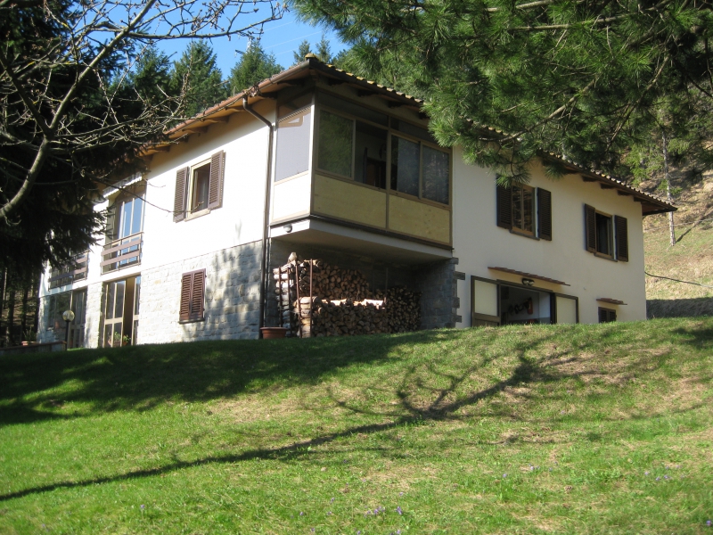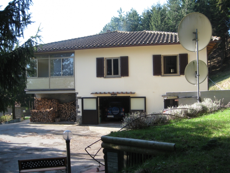 Scarperia pressi, villa libera su 4 lati, composta da due unità di complessivi mq 360, resede, garage esterno mq 25, annesso rurale mq 50 oltre 7 ha di terreno composto da seminativo, pineta, bosco, classe energetica G rif V28