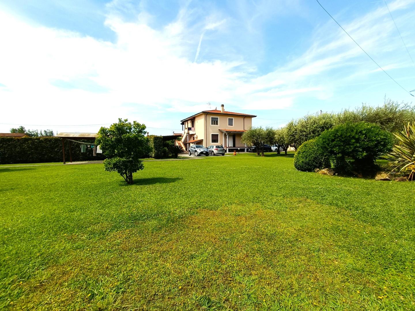 MARINA DI MASSA - ZONA RICORTOLA - Si vende villa indipendente composta da due unità immobiliari indipendenti con bellissimo giardino di circa 2000 mq. Unità PIANO RIALZATO - ingresso indipendente su ampio porticato pranzabile, disimpegno, soggio...
