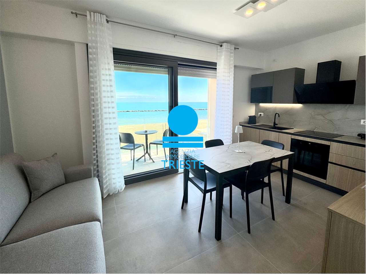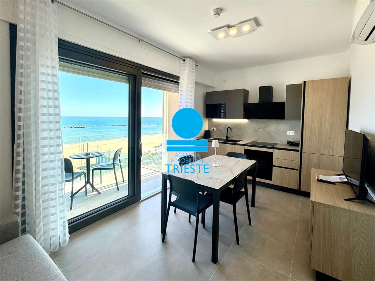 Nel nuovo prestigioso complesso di case vacanza frontemare Palms Beach Pesaro - Residence, in esclusiva per Agenzia Immobiliare Trieste, proponiamo per locazioni da 1 settimana a 90 giorni consecutivi appartamento bilocale 13 con vista mare mozzaf...