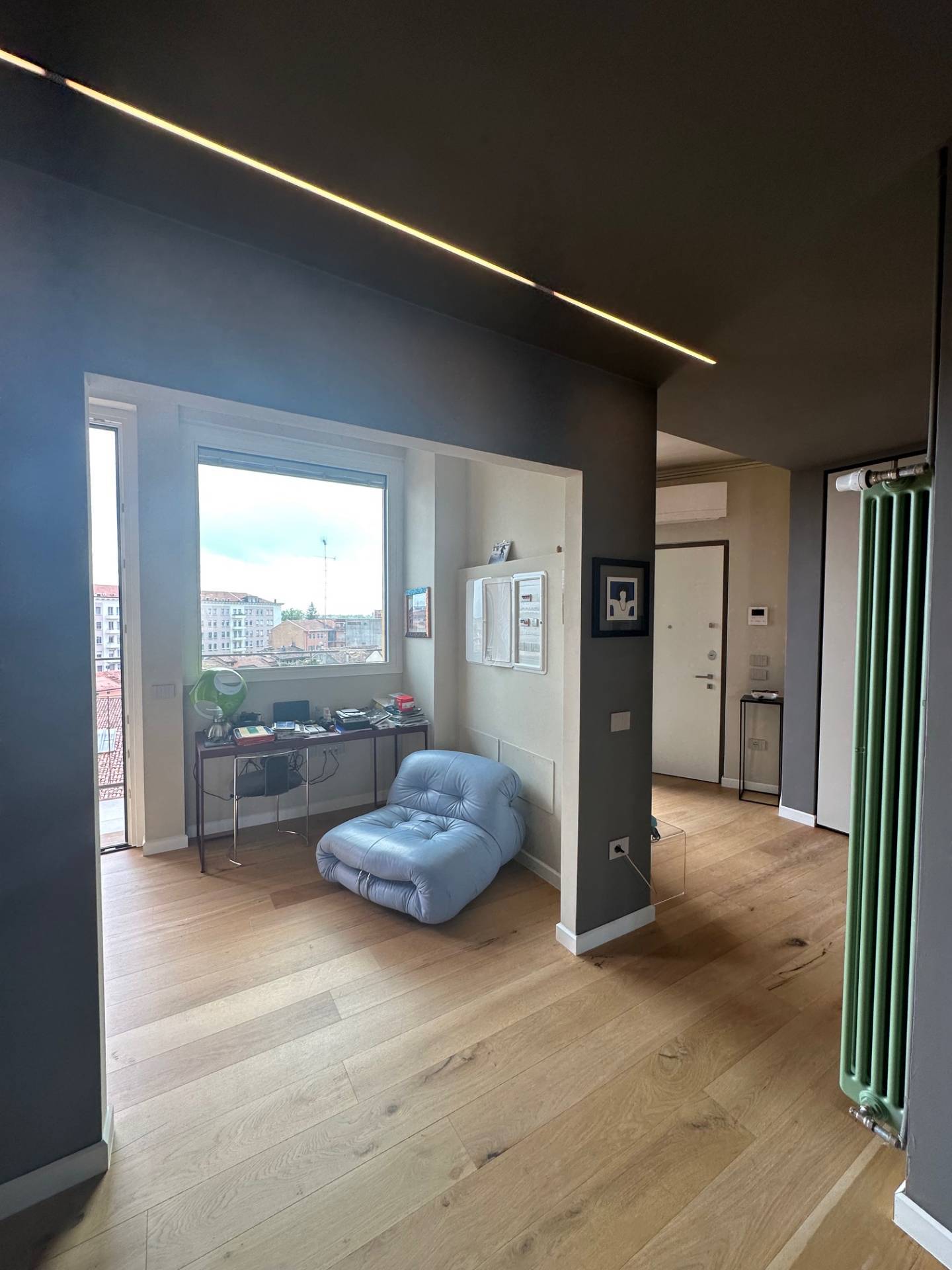 Esclusivo appartamento panoramico in centro città, situato al sesto piano di un palazzo di sette piani totali ma che ha una posizione che sembra essere un attico. L'immobile vanta di una recente e sapiente ristrutturazione con materiali di altissi...