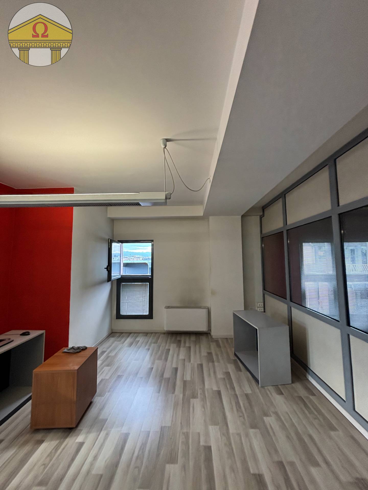 PONZANO VENETO - ufficio al piano primo open space di mq. 100 calpestabili, attualmente diviso con pareti in cartongesso in ingresso e due stanze, oltre a bagno e due terrazzini e un posto auto riservato. Già dotato di tende, impianto di illuminaz...