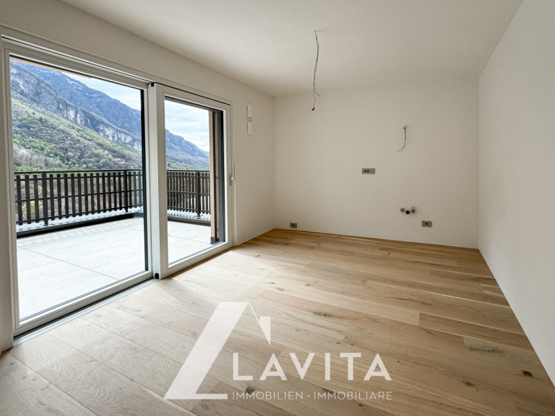 Doladizza: All’interno di una nuova costruzione certificata CasaClima A, proponiamo questo luminoso ampio bilocale con terrazza costruito nel 2020. L’immobile è situato al secondo piano, servito da ascensore, di un condominio composto da 12 appar...