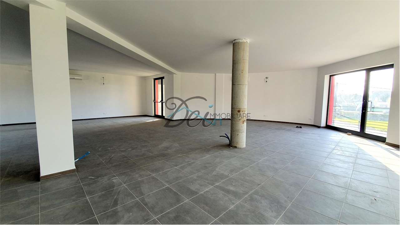 LAMMARI - Fondo ad uso direzionale di 150 mq situato al primo piano di un edificio di nuova costruzione, in zona di grande transito e visibilità. Si compone di un grande vano frazionabile dalla caratteristica forma circolare, terrazzo e servizio i...