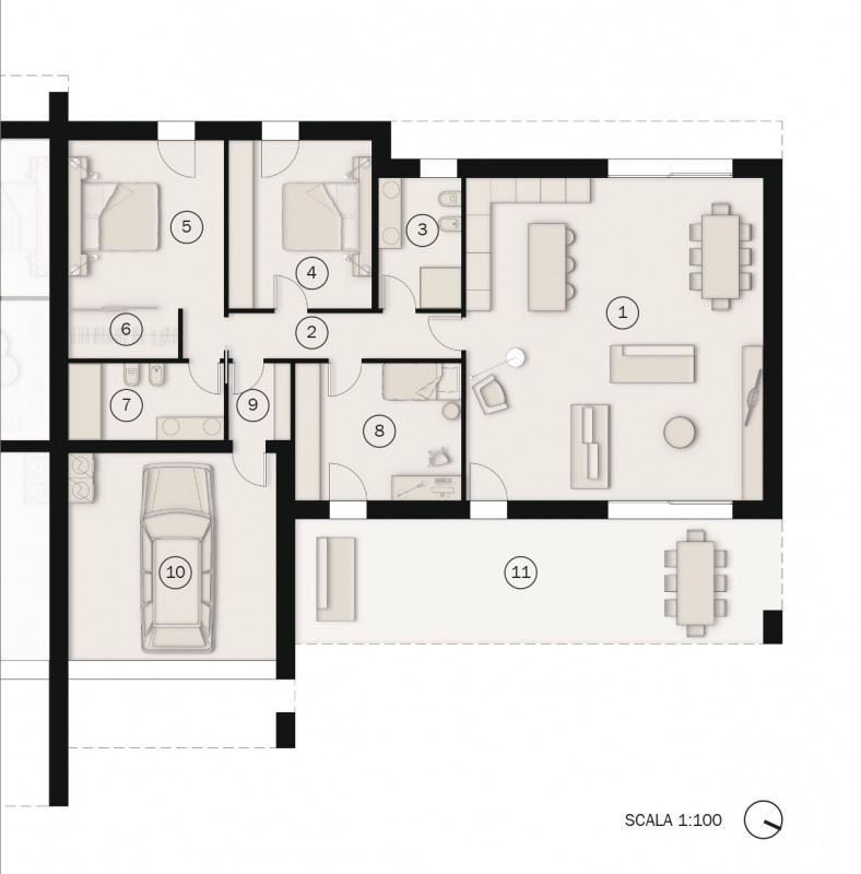 Se desiderate vivere in un contesto esclusivo e riservato, questa soluzione è pensata per voi. Situato in una nuova costruzione residenziale composta da sole quattro unità, l’appartamento al piano terra con giardino privato di 200 mq offre un’espe...