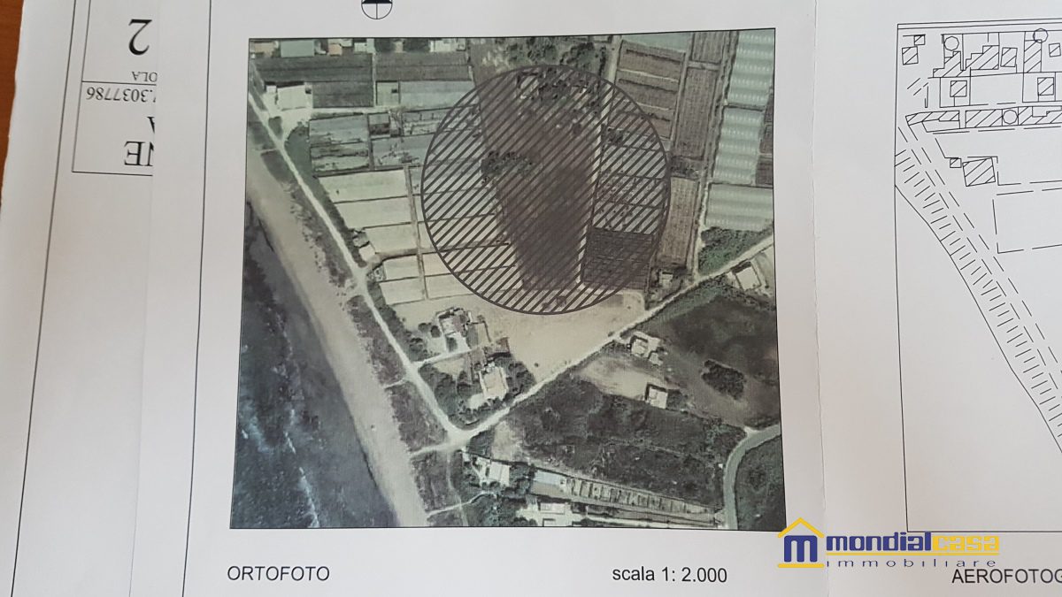 A 170 metri dalla spiaggia e dal mar Mediterraneno, stacco di terreno della superficie di mq. 5860 con progetto già approvato per la realizzazione di un fabbricato di mq. 350 circa, con possibilità di adattarlo a scopi turistici.