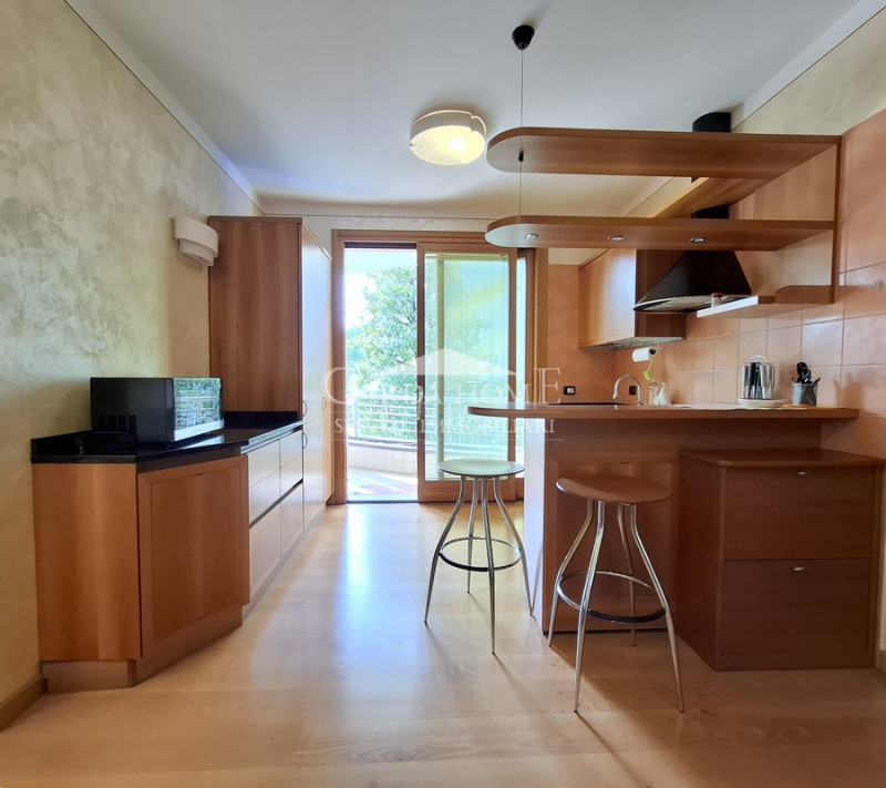 Luminoso appartamento con bella vista lago ed inserito in una zona residenziale e silenziosa a pochi passi dal centro storico e dalla stazione ferroviaria. L'abitazione si distingue per la sua superficie generosa e così distribuita: l'ampio ingre...