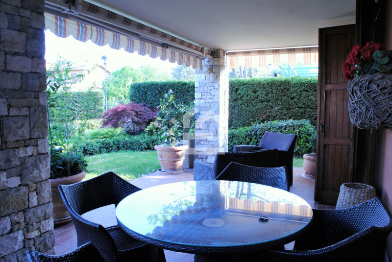 In contesto di sole 10 unità abitative inserite in contesto residenziale con piscina a Manerba del Garda, proponiamo in affitto un elegante appartamento trilocale al piano terra composto da soggiorno accogliente con angolo cottura, camera matrimo...