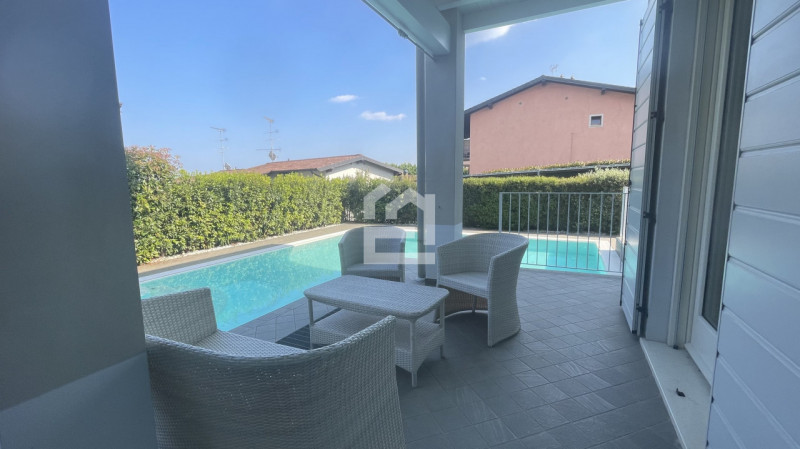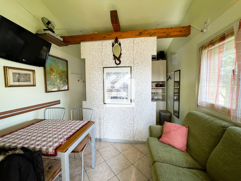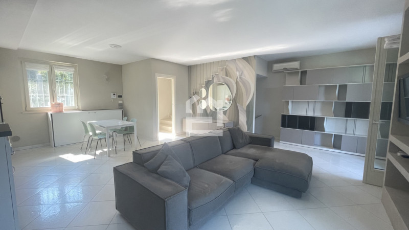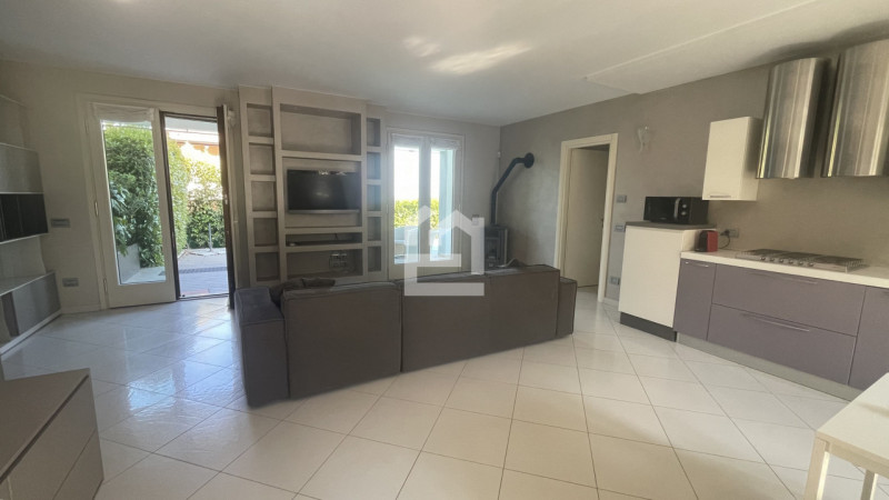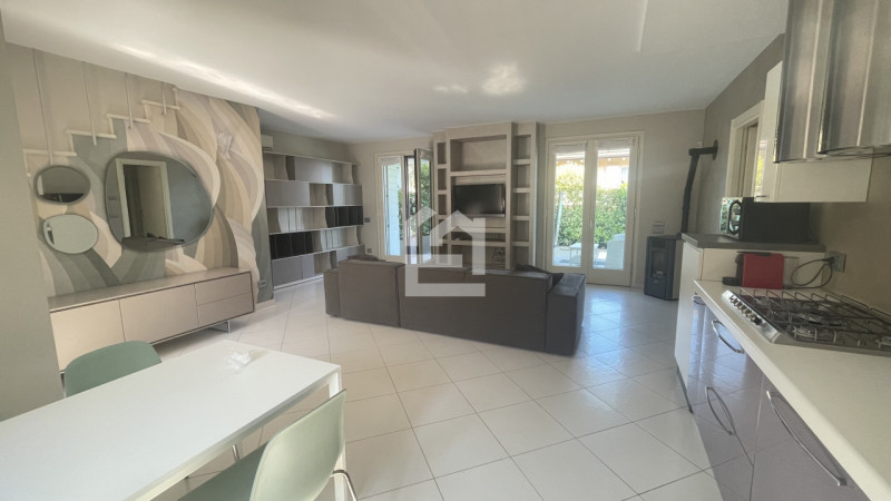 Inserito in contesto di residence con piscina e campo da tennis, disponiamo di ampio trilocale al piano terra, con giardino privato cintato e portico. L'immobile è composto da soggiorno con un angolo cottura ben accessoriato, disimpegno, due camer...