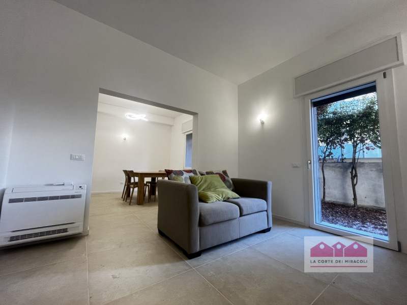 SAN BORTOLO: BICAMERE SEMIARREDATO CON GIARDINO AL PIANO TERRA. COMPOSTO DA SOGGIORNO CON ANGOLO COTTURA, DUE BAGNI, DUE CAMERE, POSTO AUTO E GIARDINO. RIF. 2207XL EURO 1.100+20 SPESE CONDOMINIALI In zona tranquilla e ottimamente connessa ai prin...