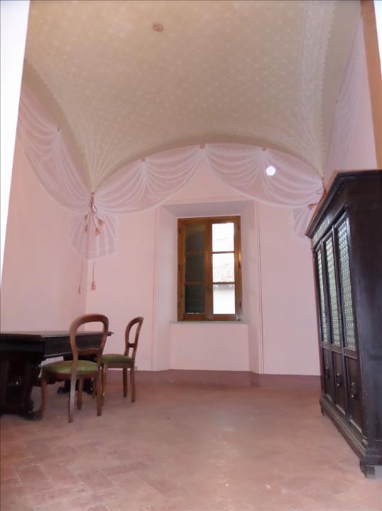 SARTEANO (SI), alla quota di 573 m s.l.m. ed a 6 km dal casello autostradale A1 di Chiusi/Chianciano Terme, vendesi in centro storico a due passi dalla piazza, grande appartamento secondo piano con mansarda, magazzini al piano terra e cortile inte...