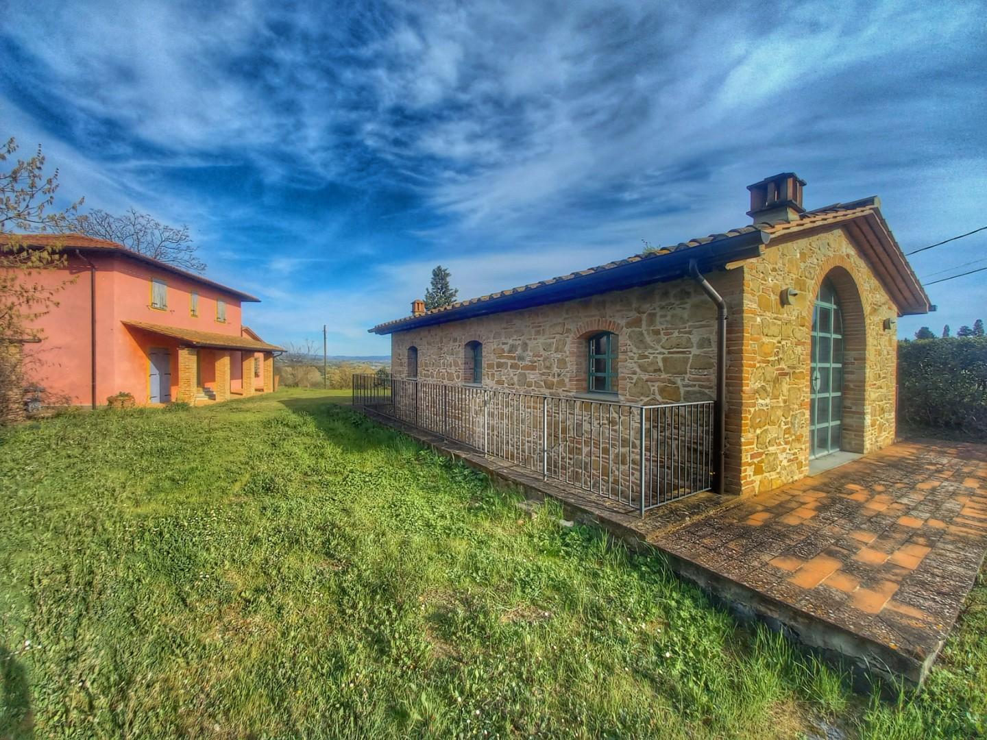 Bella proprietà ubicata in ottima posizione con splendida vista panoramica, composta da casa colonica e fienile circondati da 1 ettaro di terreno. L'immobile principale misura 200 mq complessivi, è strutturato su due livelli ed è così suddiviso: p...
