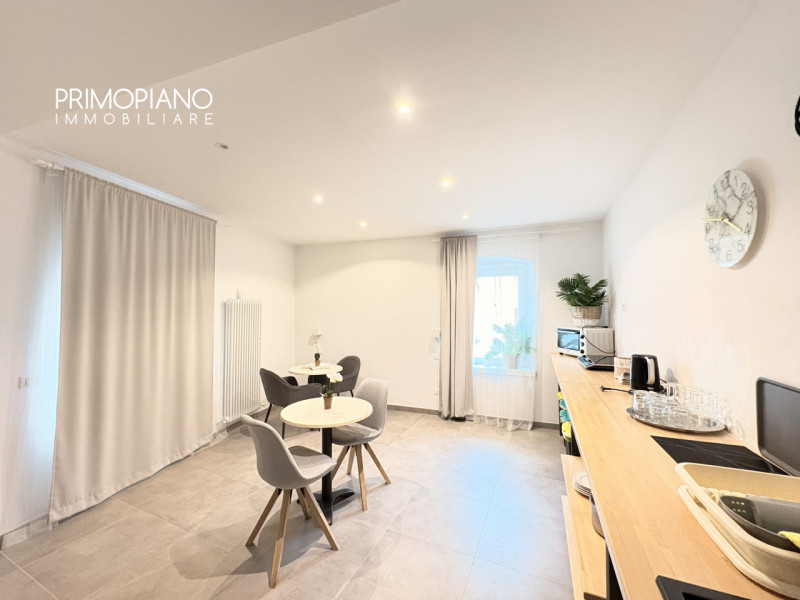 In Piazza Mercato a Comano Terme proponiamo in vendita mini appartamento completamente e finemente arredato, in recente costruzione in Classe A. L'immobile è composto da ampio soggiorno con angolo cottura e balcone, disbrigo, stanza matrimoniale e...