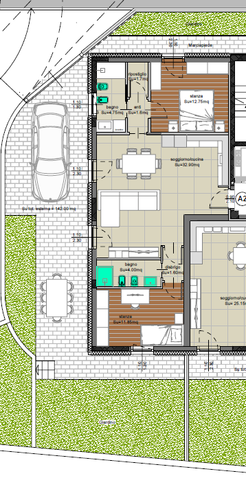 Nel centro di Aldeno proponiamo in vendita appartamento al piano terra con spazio esterno di centoquarantadue metri quadri, in parte utilizzato a parcheggio e in parte a giardino. L'immobile è composto da ampio soggiorno di trentadue metri quadri ...