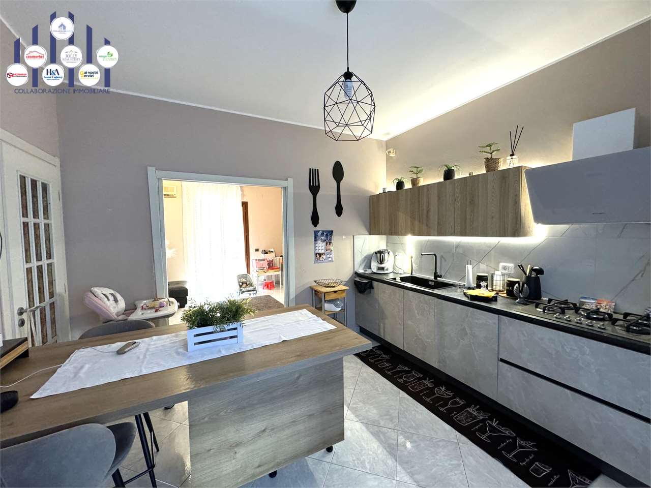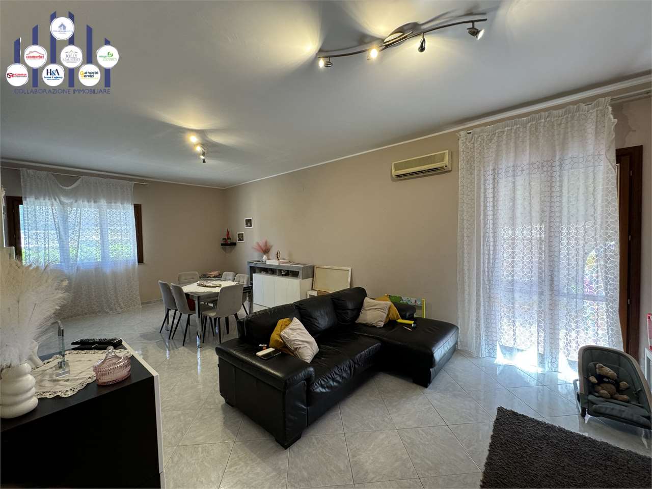 Si propone in vendita trilocale di mq 77 c.a sito al piano terra di una mini palazzina di tre piani . L'immobile, con doppio ingresso, è così composto : soggiorno/sala da pranzo, cucina, bagno, lavanderia e a seguire due camere da letto comunicant...