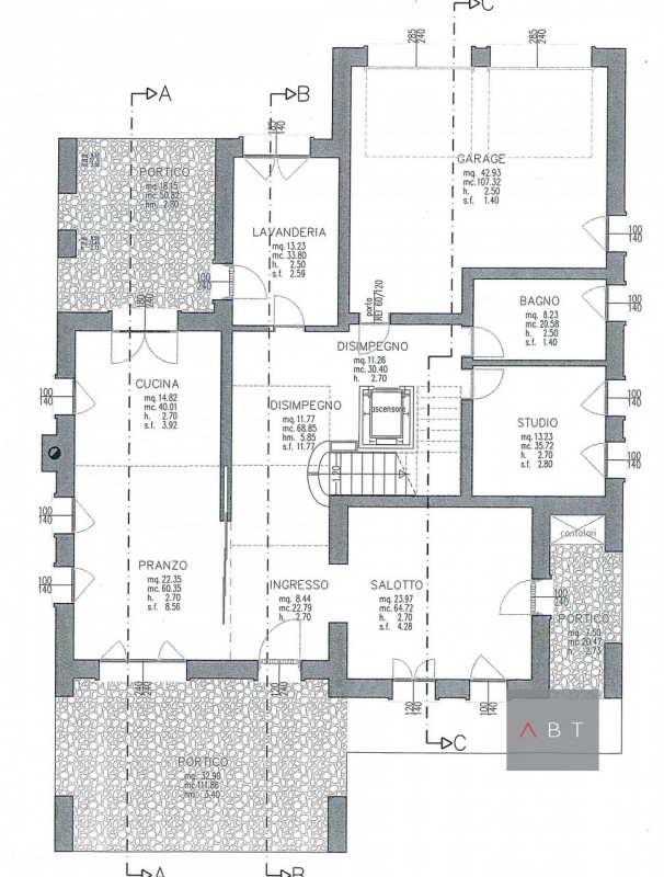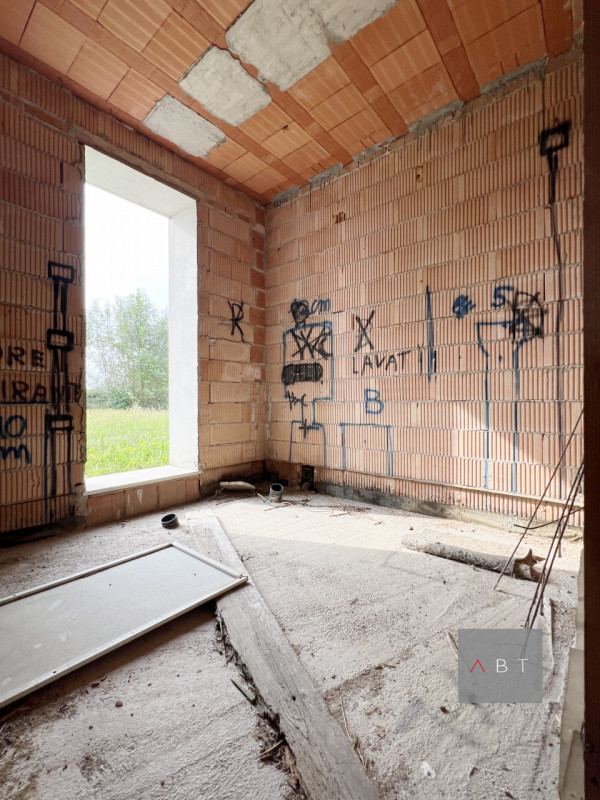 Situata in centro paese, villa singola al grezzo e composta di: ingresso, cucina, pranzo, salotto, studio, tre bagni, lavanderia, tre camere, due logge, due ripostigli, tre portici, garage di 43 mq. e giardino di circa 1000 mq. Classe Energ. non s...