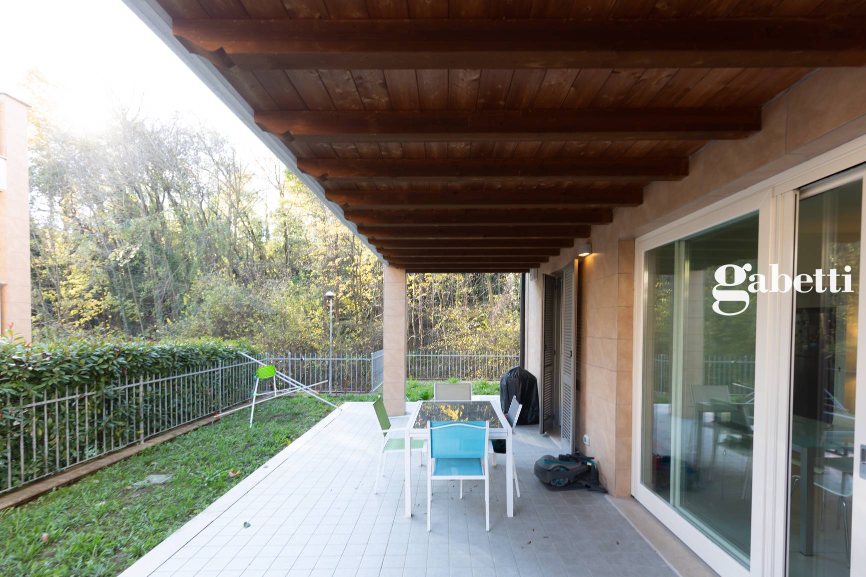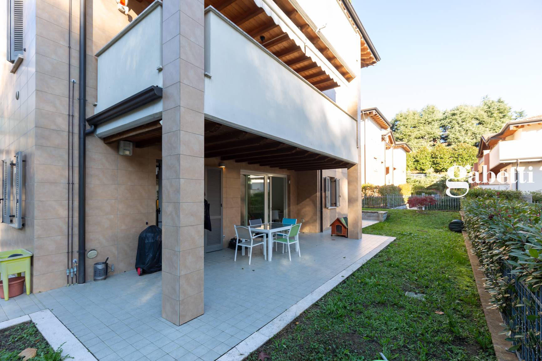 Imbersago - In residence con piscina condominiale, disponiamo di elegante appartamento al piano terra con giardino privato sui tre lati e portico di 30 mq con caratteristiche travi a vista, ideale per trascorrere piacevoli momenti all'aria aperta....