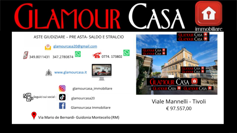 Quota pari a 1/1 del diritto di proprietà su appartamento sito in Tivoli (RM) Via Riccardo Mannelli piano 1, composto da ingresso su soggiorno/pranzo con angolo cottura, tre camere, bagno e disimpegno, per complessivi mq. 105. PREZZO BASE € 130....